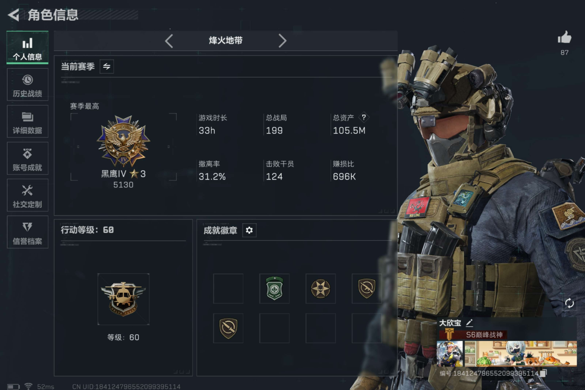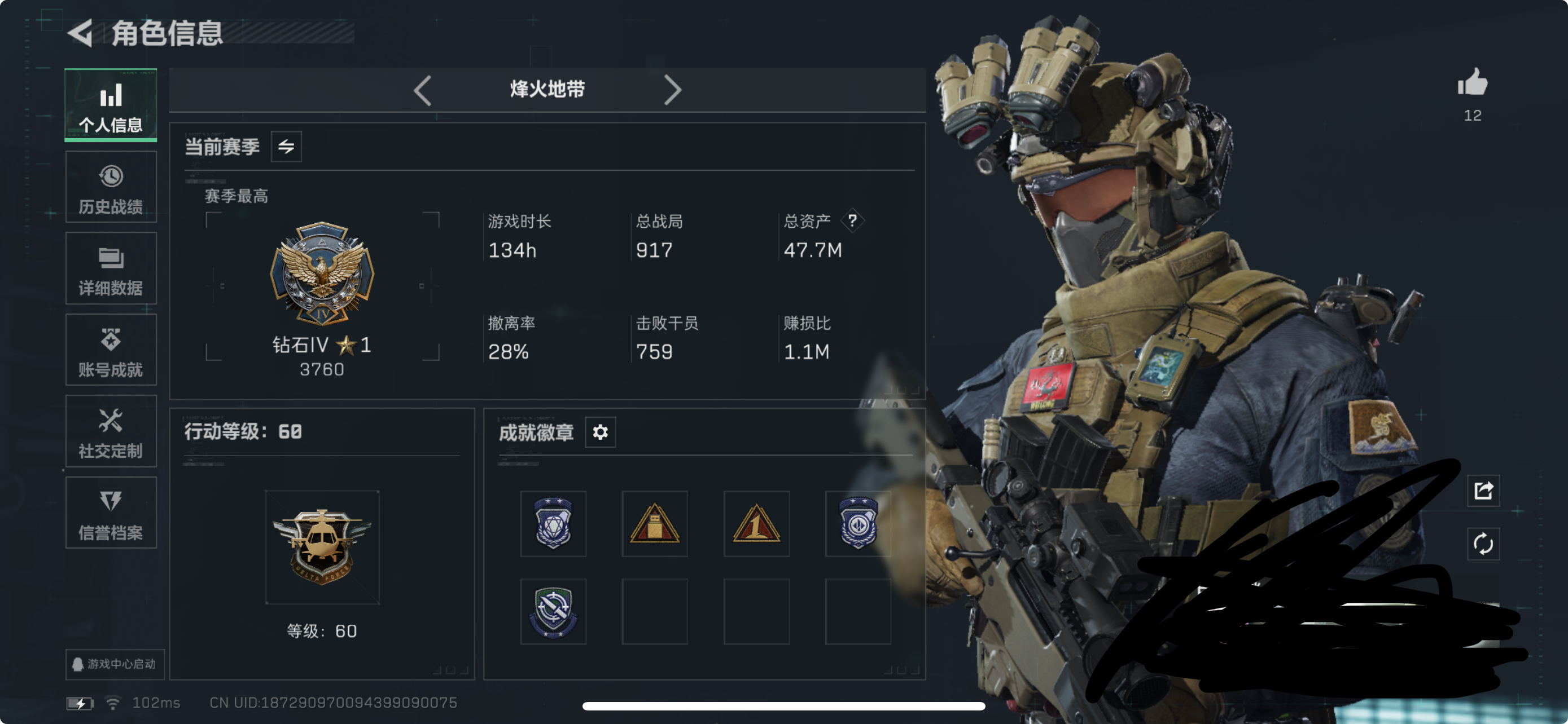 【总资产(M)】47.75【哈夫币】285k【行动等级】60