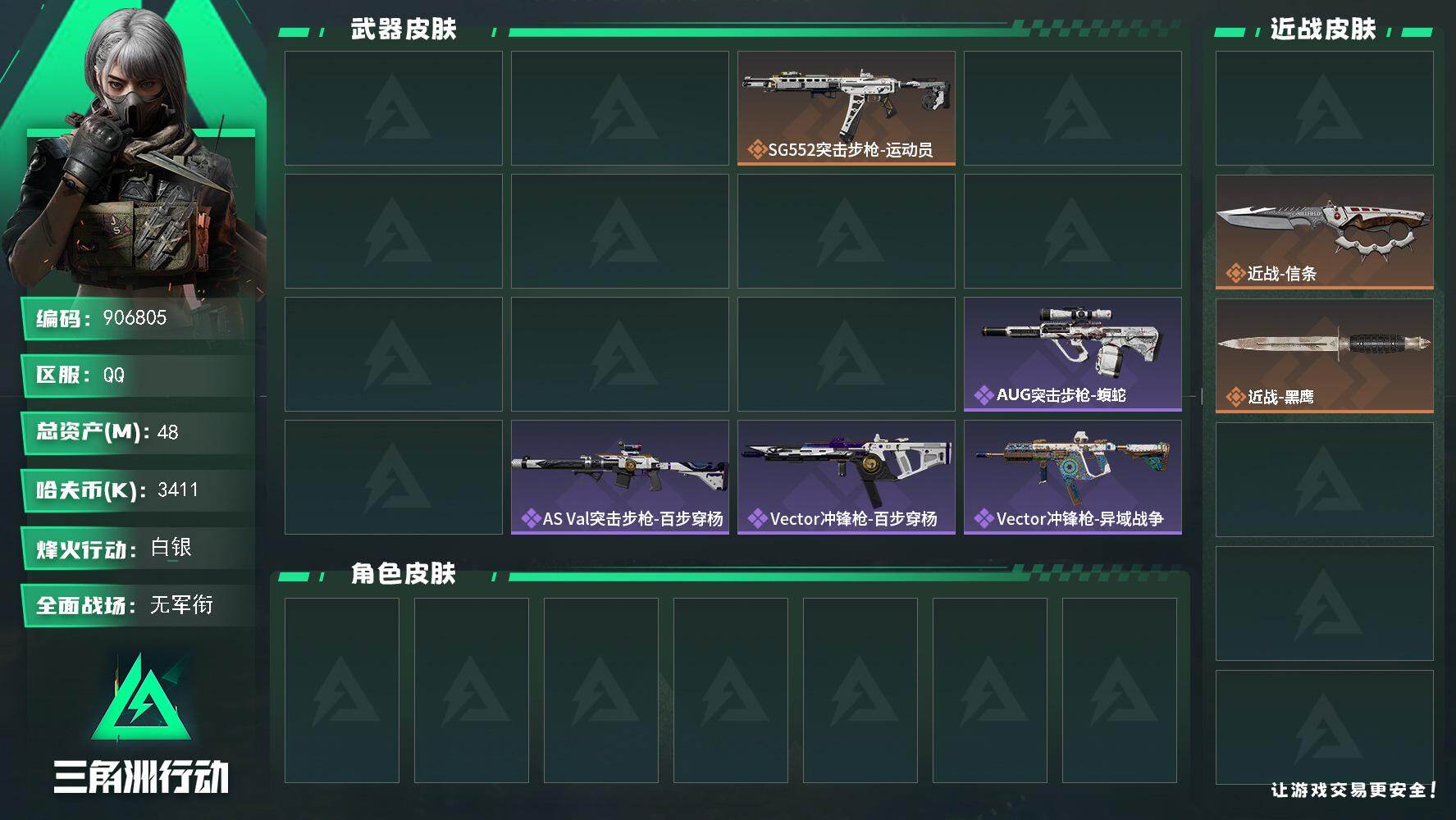 S8赛季顶级安全箱 38颗AW子弹 安全箱皮肤零号玩家 总资产96M,哈夫币3,892K,行动等级:60,近战数量:3,仓库等级:8级,训练中心等级:7级,靶场等级:6级,干员皮肤:1,枪皮:176
