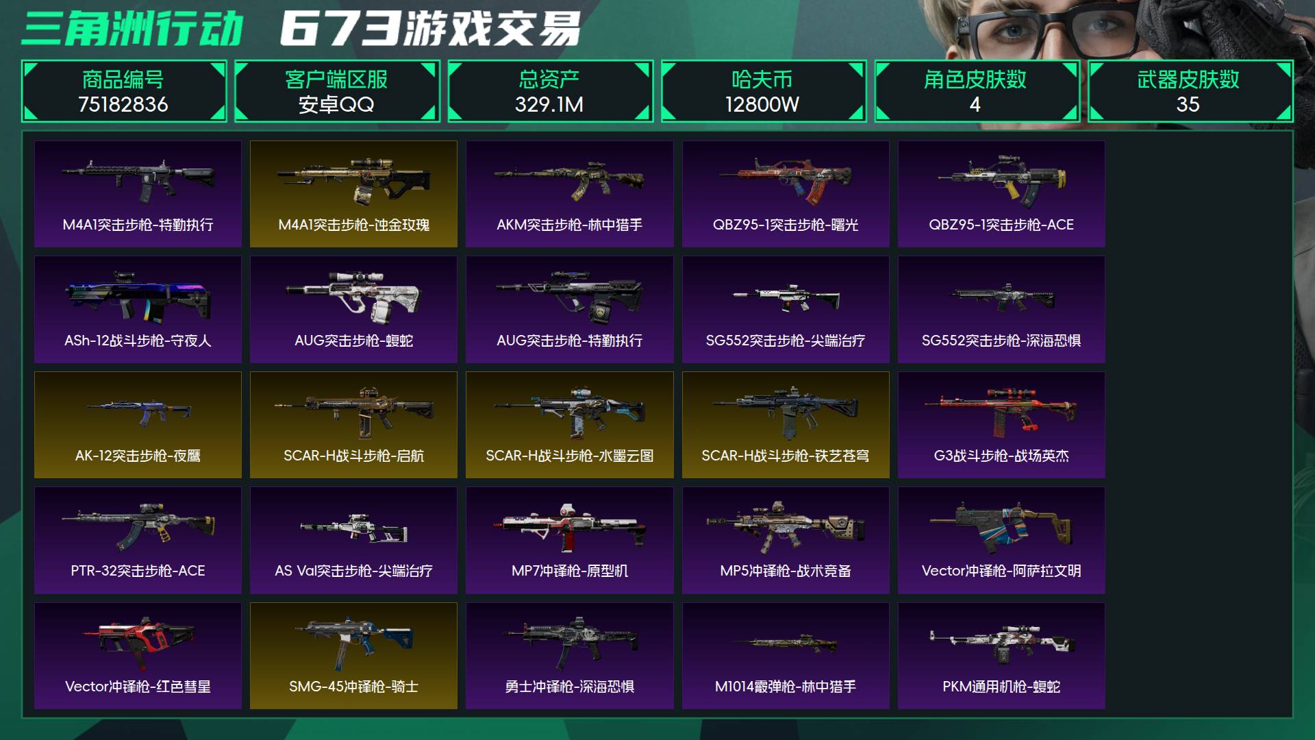 367m仓库 181m纯币 满体满负 3x3保险 70发AP 34m收藏室 仓库多红和装备 可二次