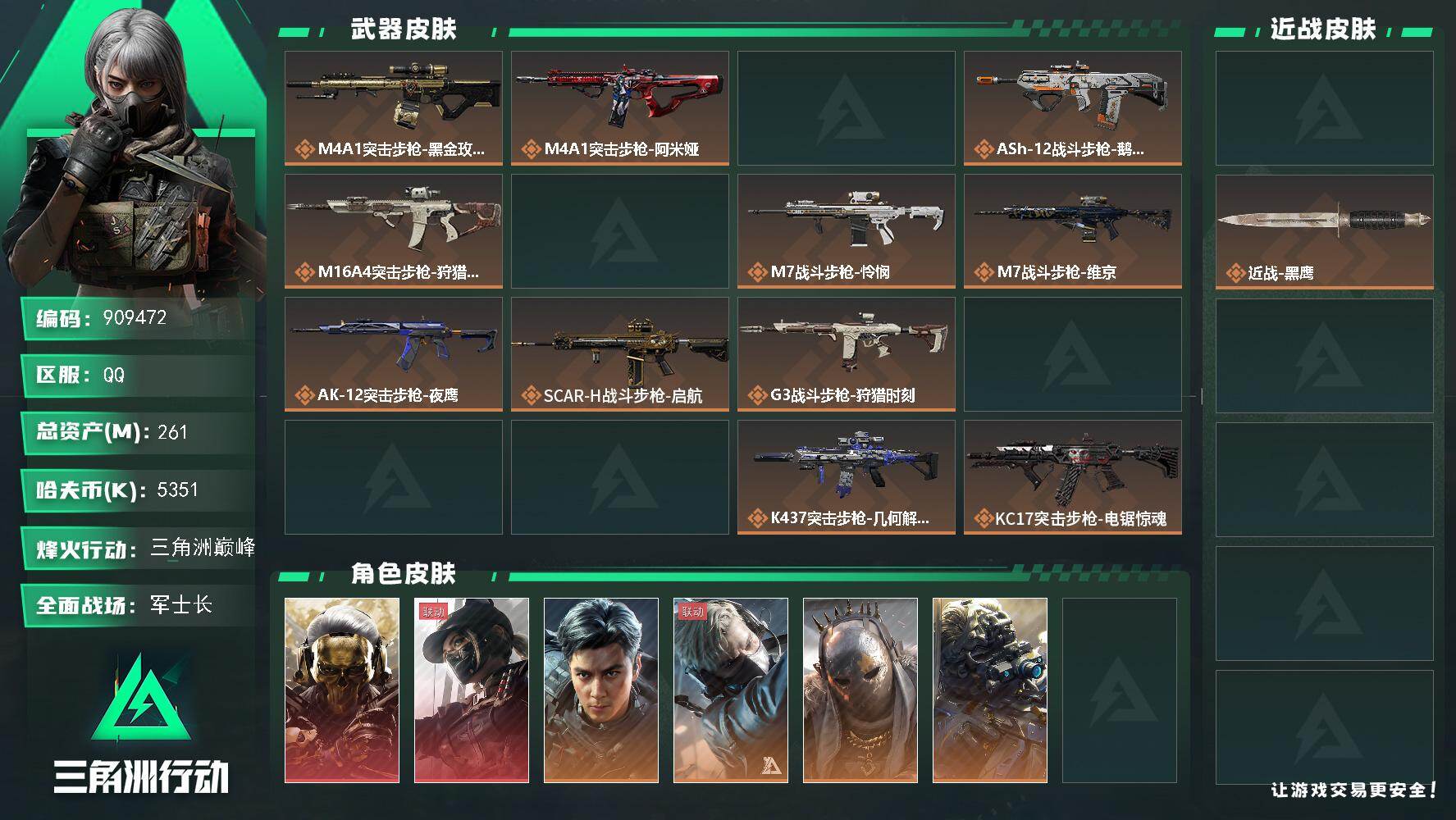 261m总资产-5351k哈夫币-60烽火等级-三角洲巅峰-50战场等级-军士