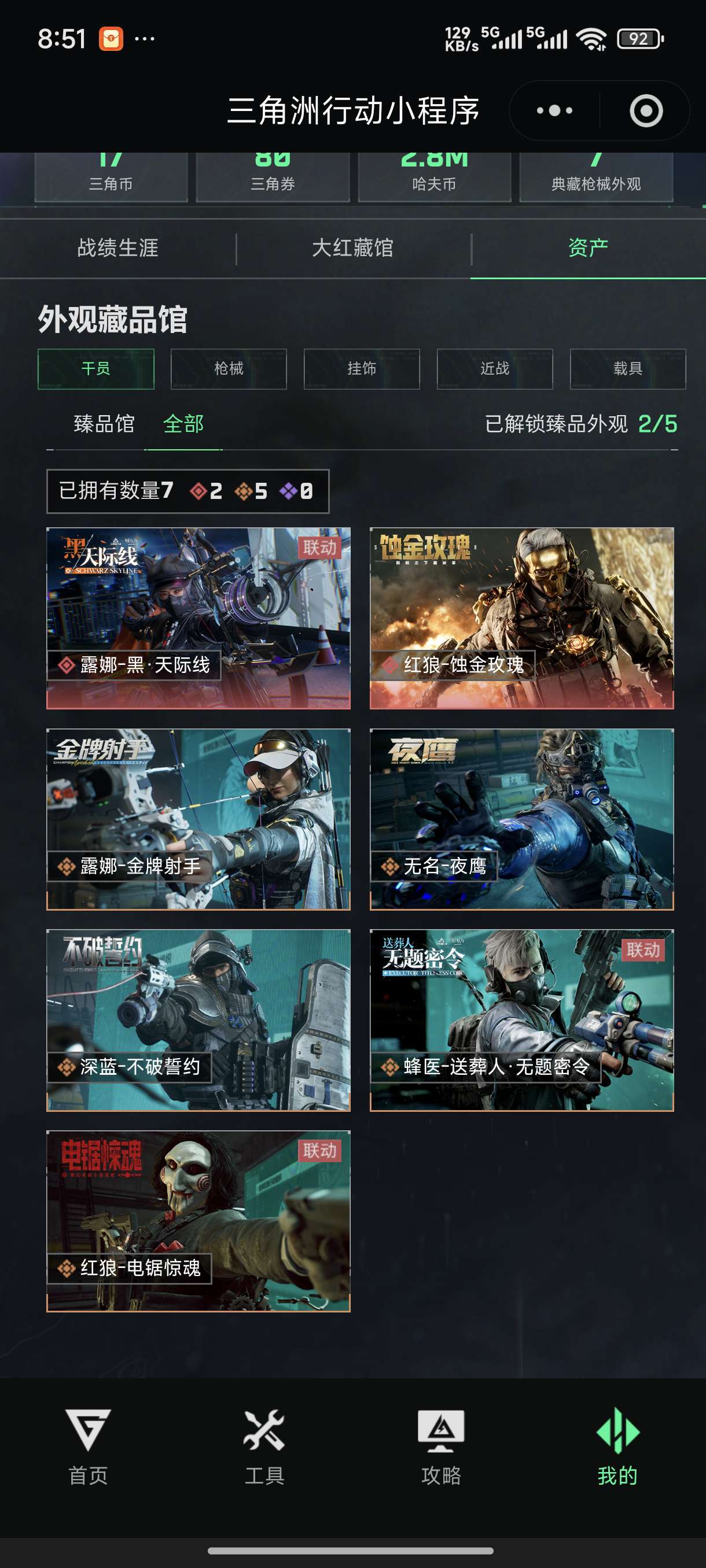 总资产(M):189M/哈夫币(K):3017K/传说枪皮数:7/全面战场等级:1_段位:无段位/烽火地带等级:60_段位:黑鹰/