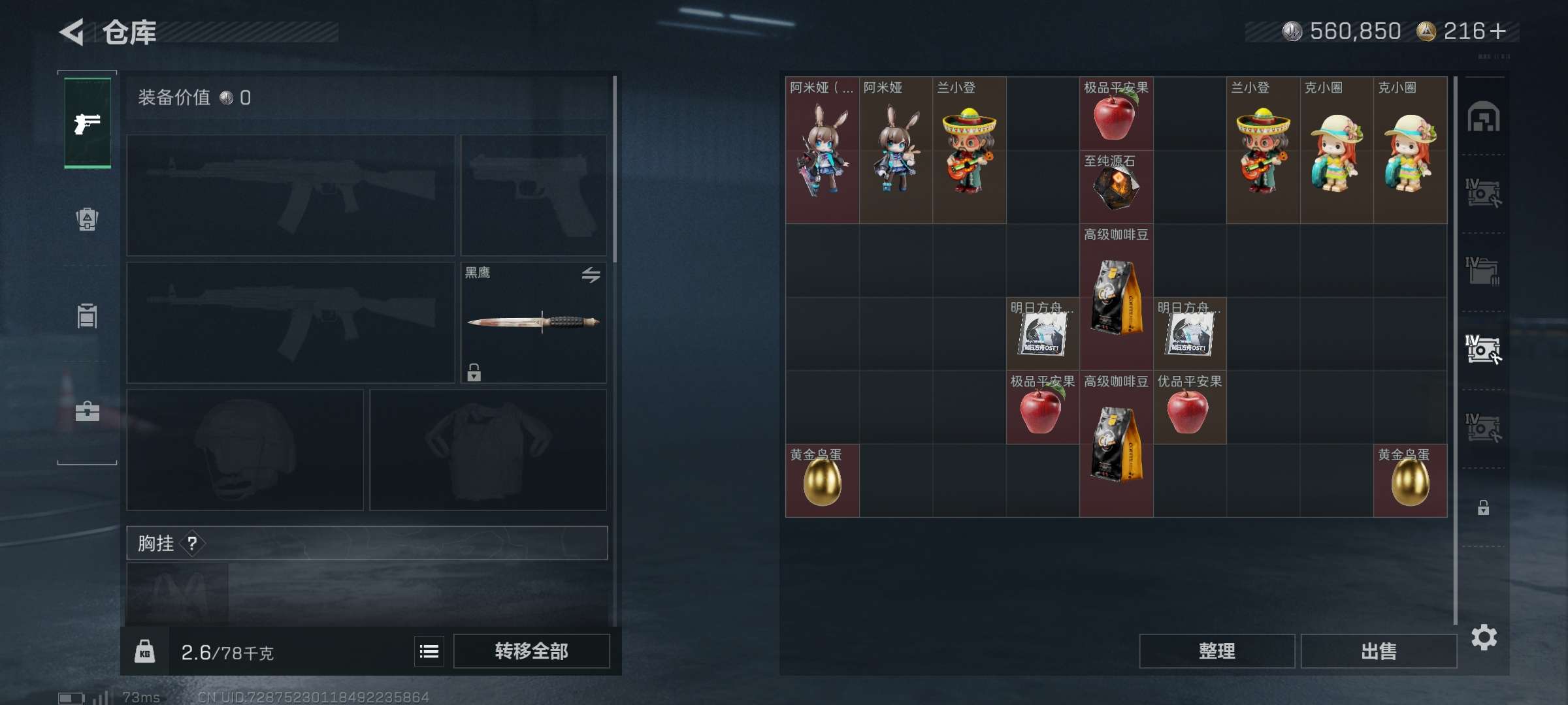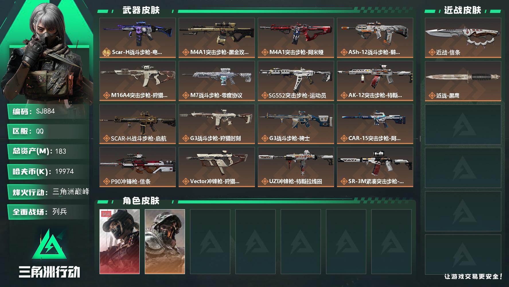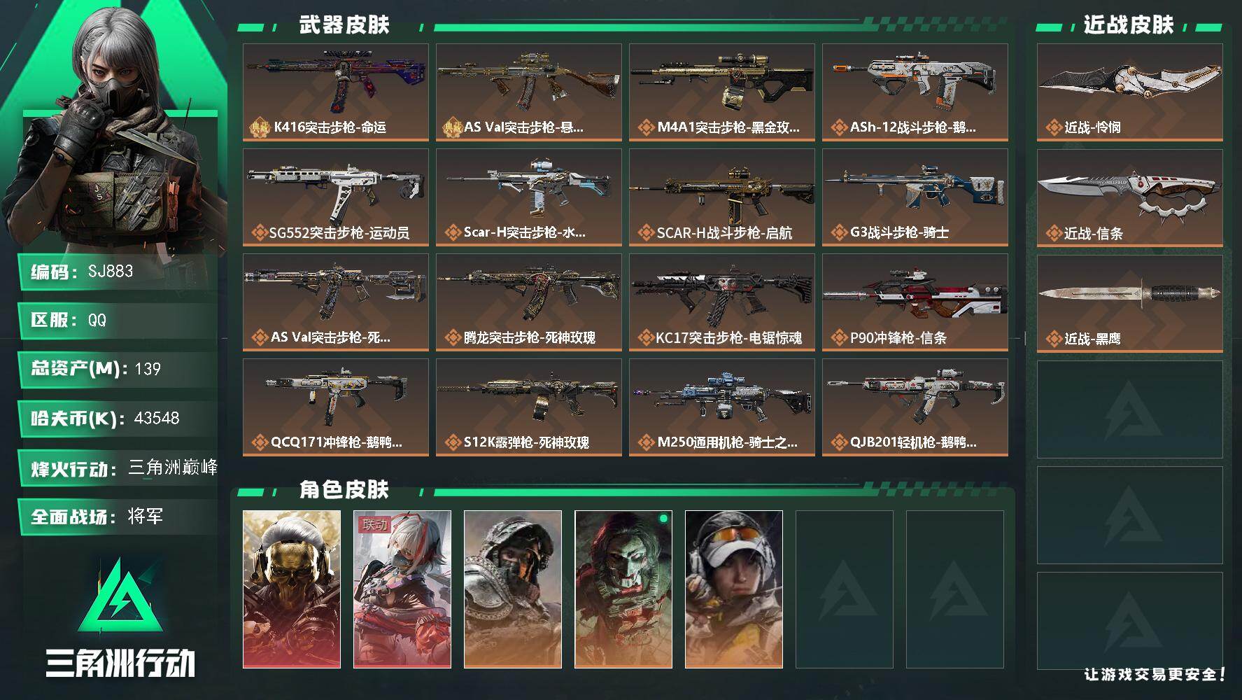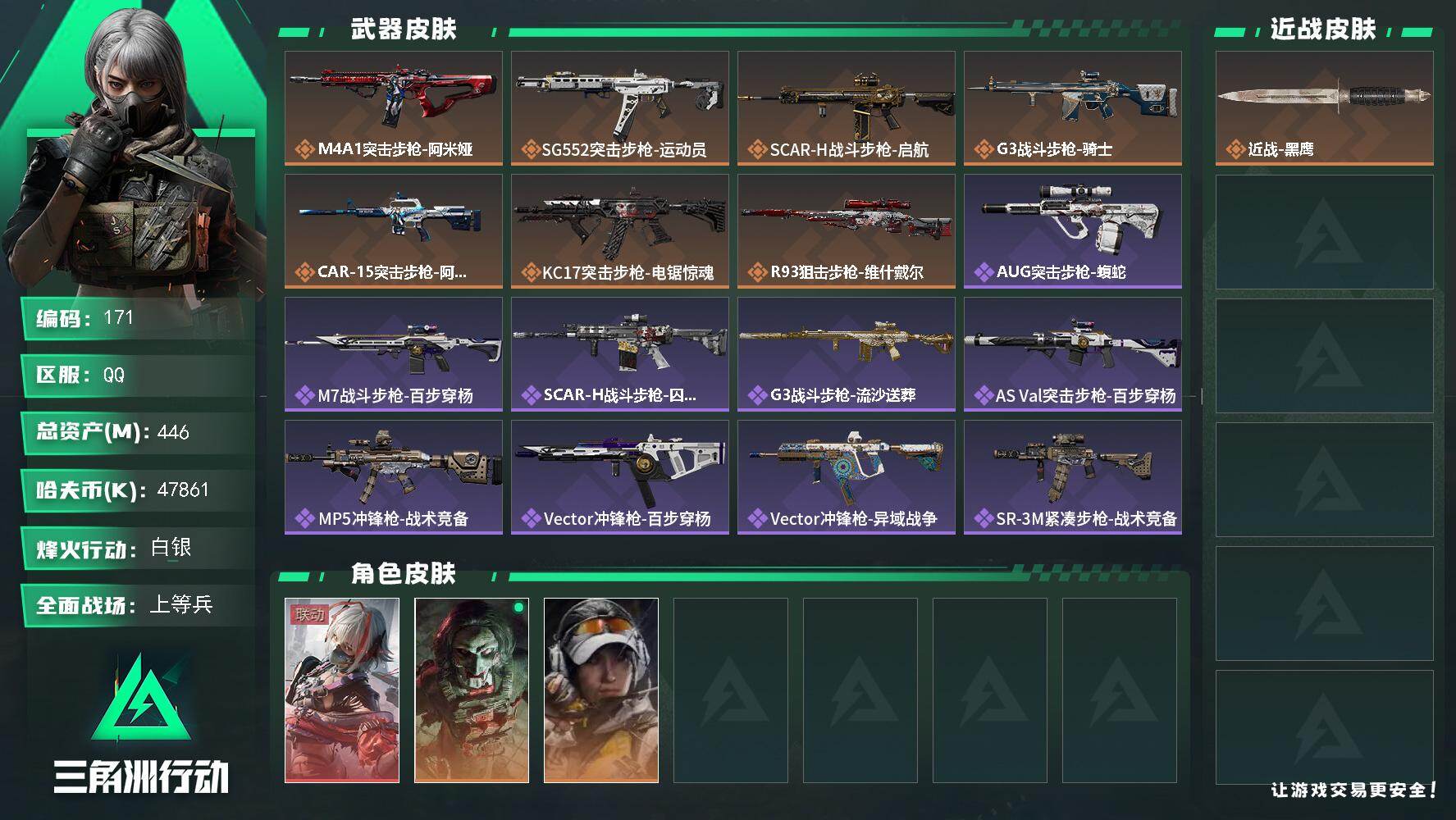 【SJ867】行动等级:60 总资产:168M 哈夫币:611.2W 近战武器