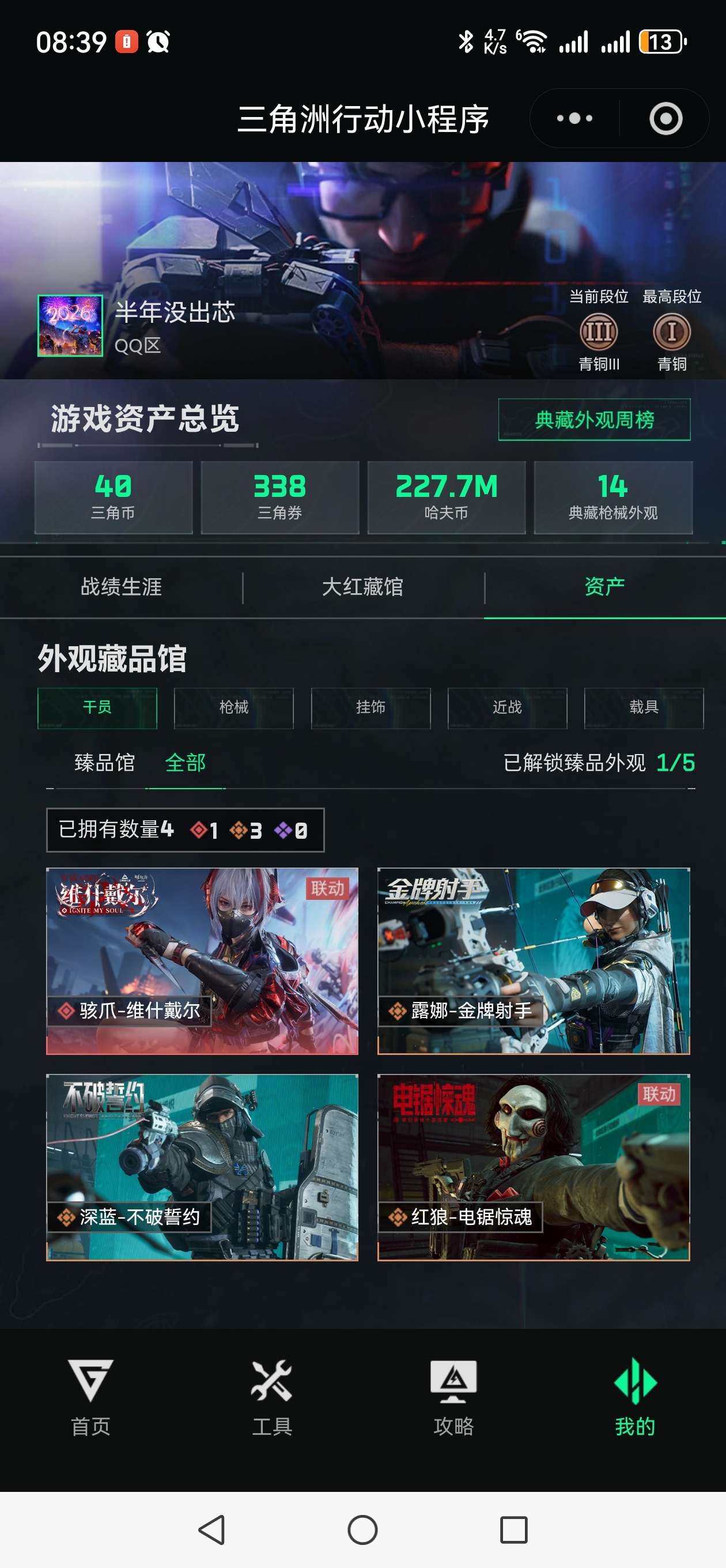 446m总资产-47861k哈伏币-60烽火等级-白银-26战场等级-上等兵,