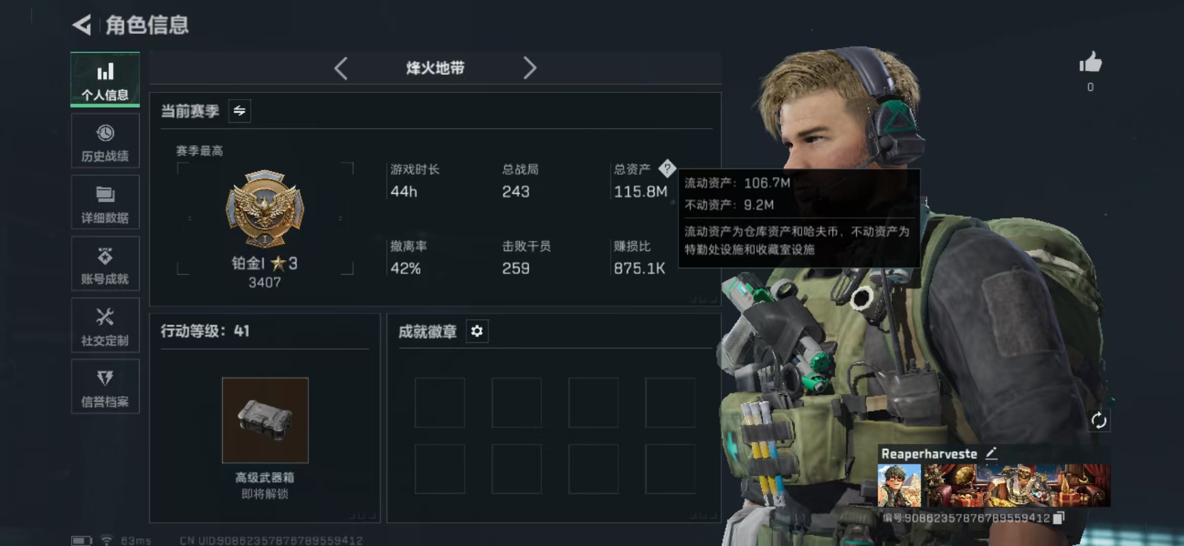 行动等级:60 总资产:168M 哈夫币:611.2W