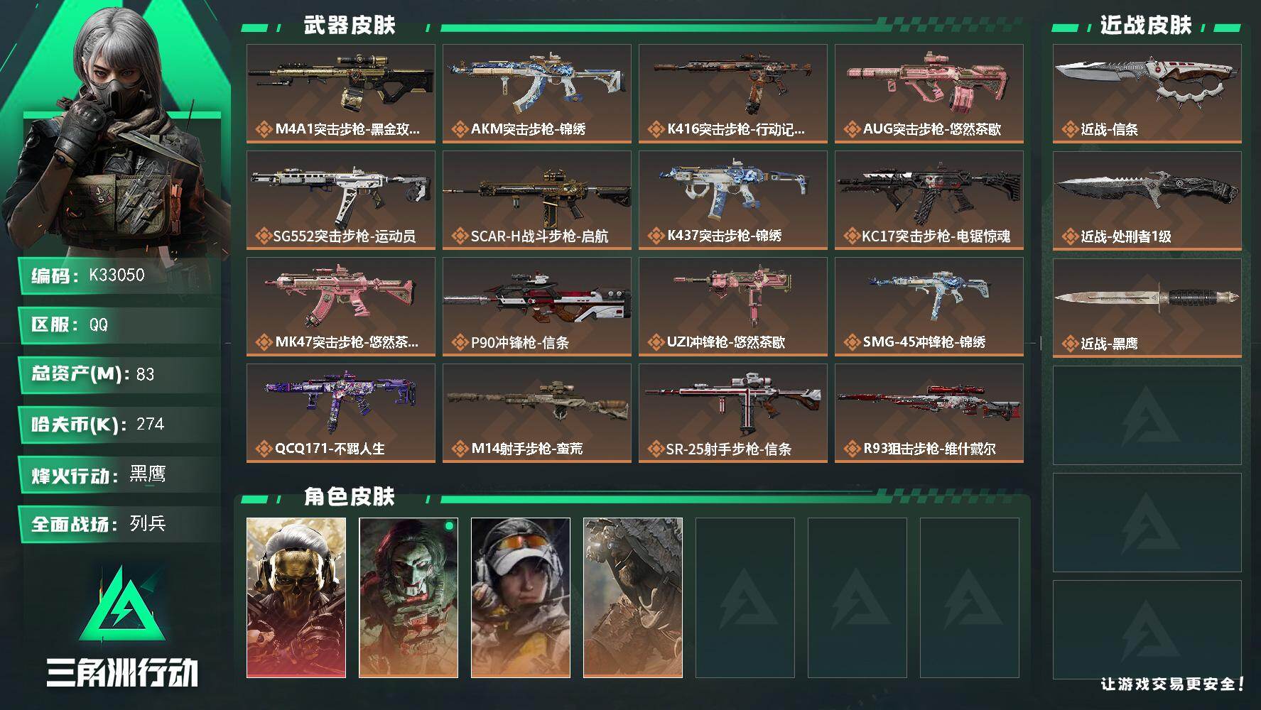83m总资产-274k哈夫币-60烽火等级-黑鹰-9战场等级-列兵