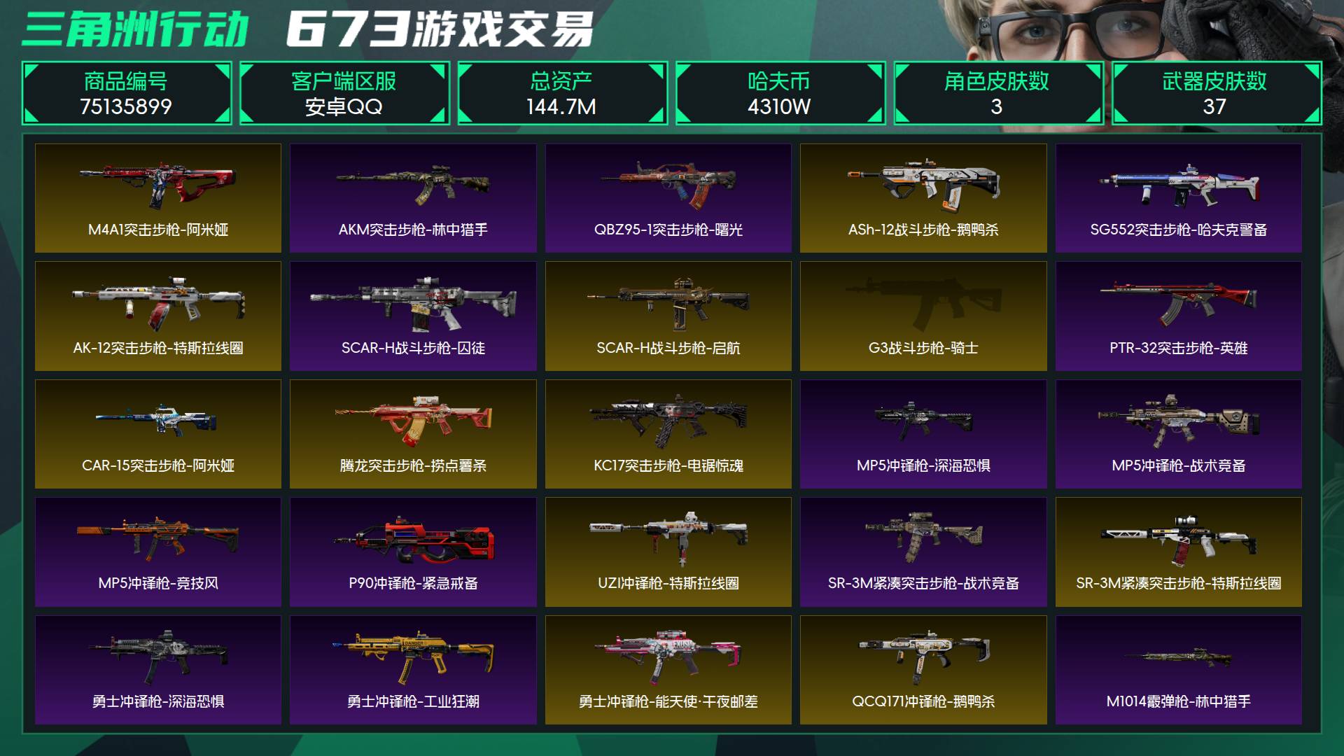 367m仓库 181m纯币 满体满负 3x3保险 70发AP 34m收藏室 仓库多红和装备 可二次