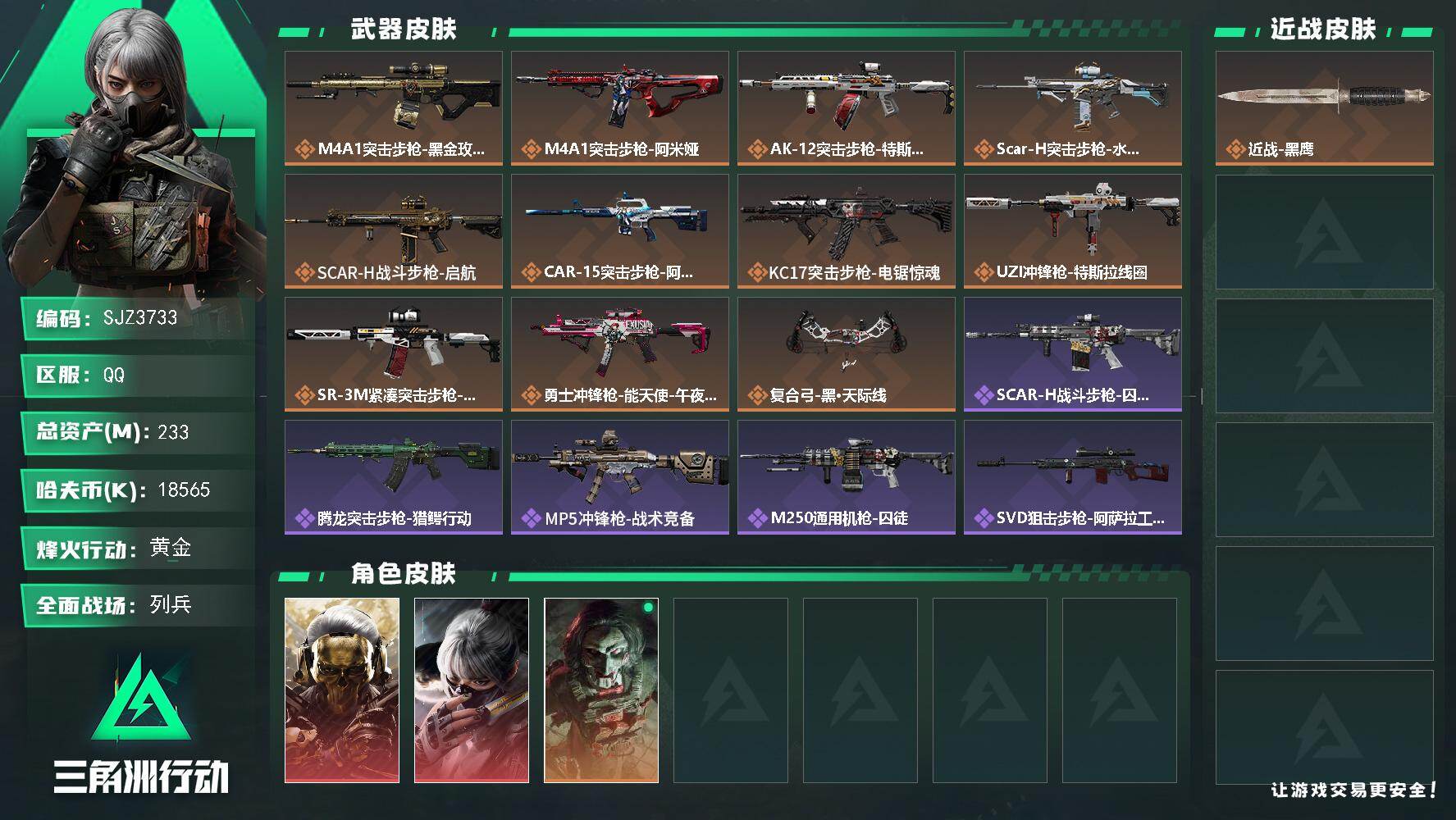 总资产(M):233M/哈夫币(K):18565K/传说枪皮数:11/全面战场等级:8_段位:列兵/烽火地带等级:60_段位:黄金/