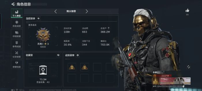 154m总资产-174k哈夫币-60烽火等级-黑鹰-26战场等级-上等兵【干