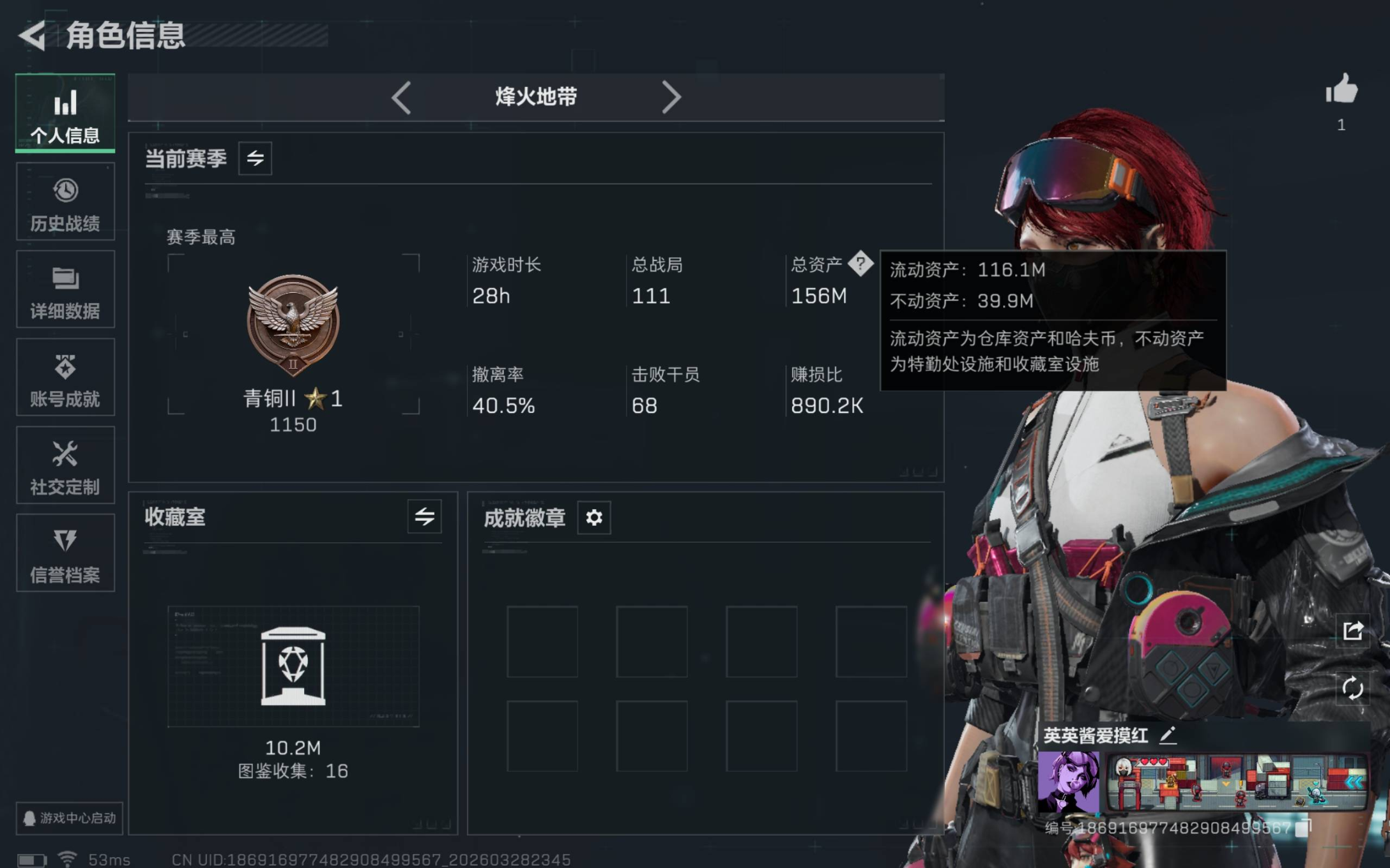 30m总资产-12485k哈夫币-17烽火等级-青铜-1战场等级-无军衔【近