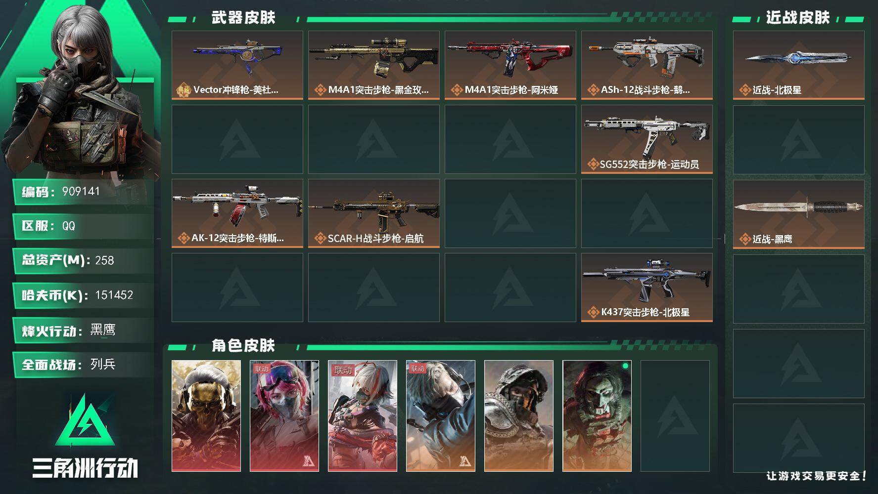 258m总资产-151452k哈夫币-60烽火等级-黑鹰-19战场等级-列兵
