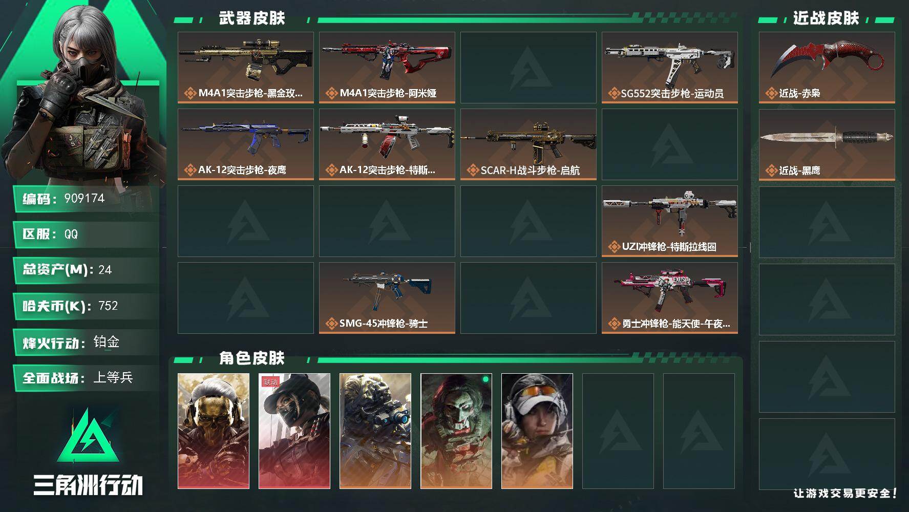 24m总资产-752k哈夫币-60烽火等级-铂金-31战场等级-上等兵【干员