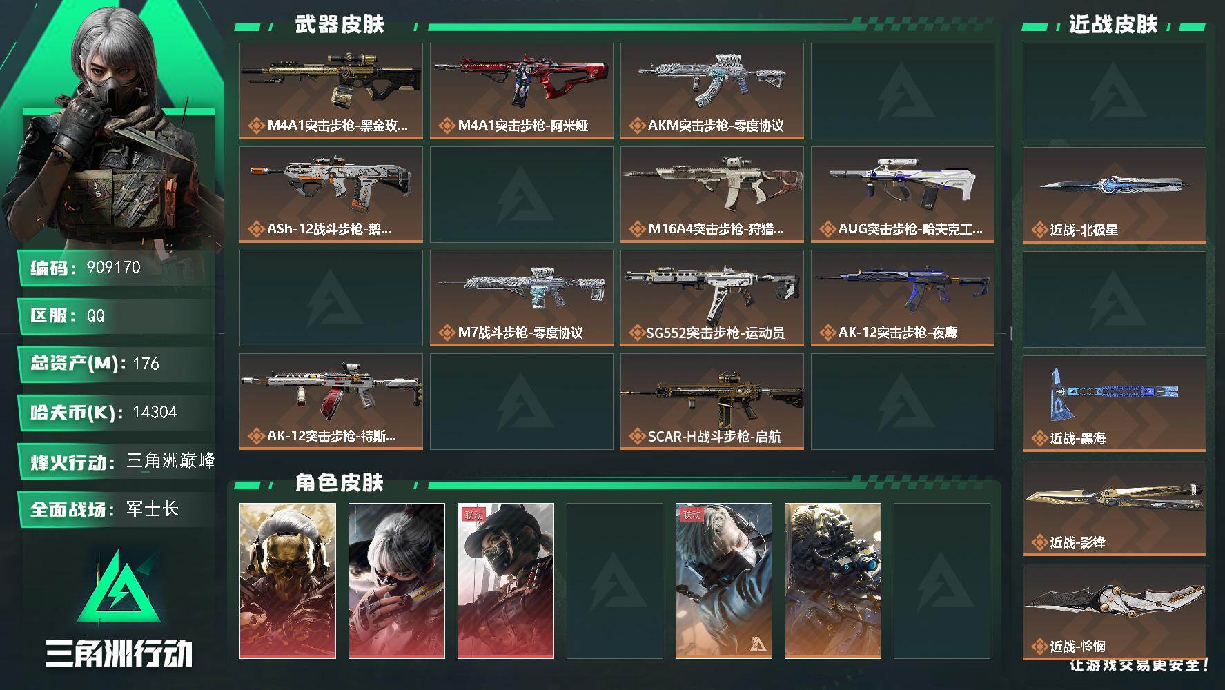 176m总资产-14304k哈夫币-60烽火等级-三角洲巅峰-50战场等级-军