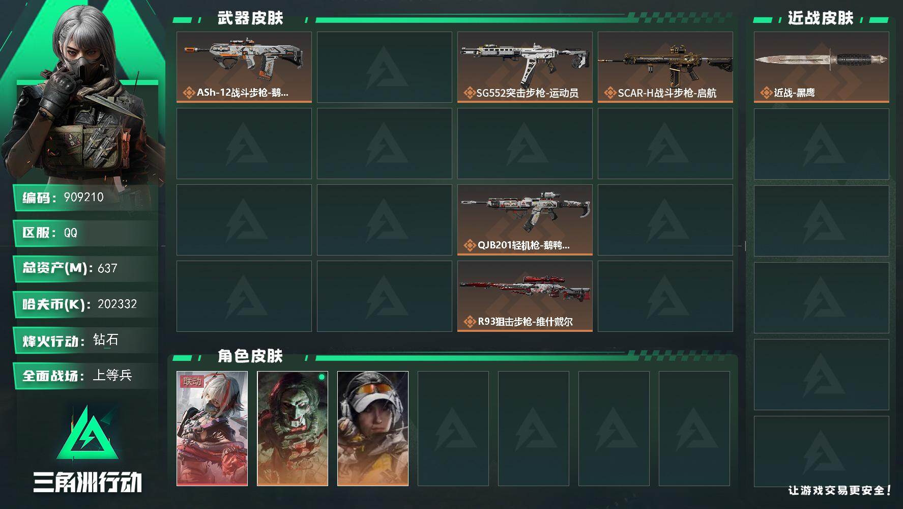 637m总资产-202332k哈夫币-60烽火等级-钻石-16战场等级-上等兵