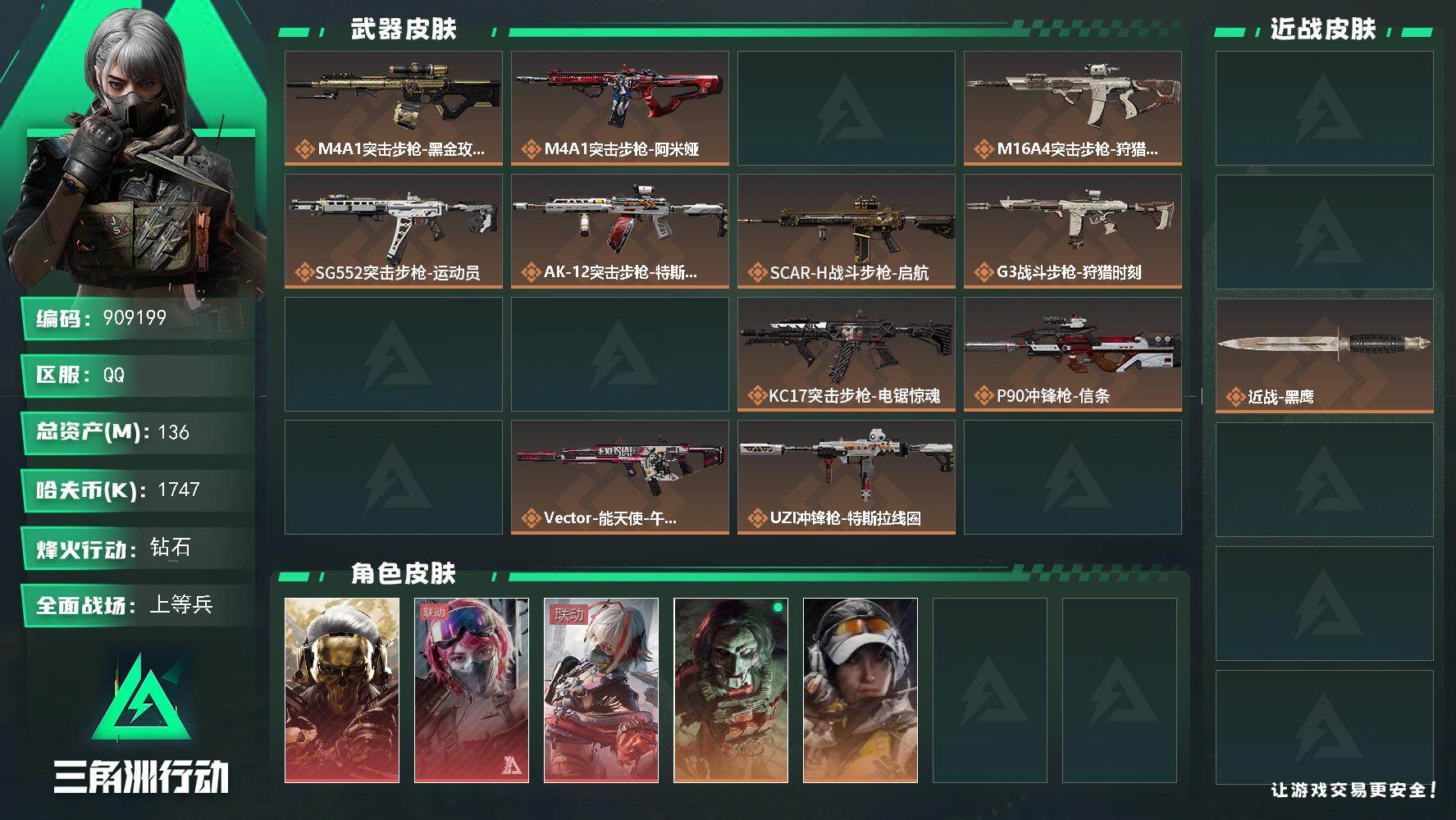 136m总资产-1747k哈夫币-60烽火等级-钻石-18战场等级-上等兵【