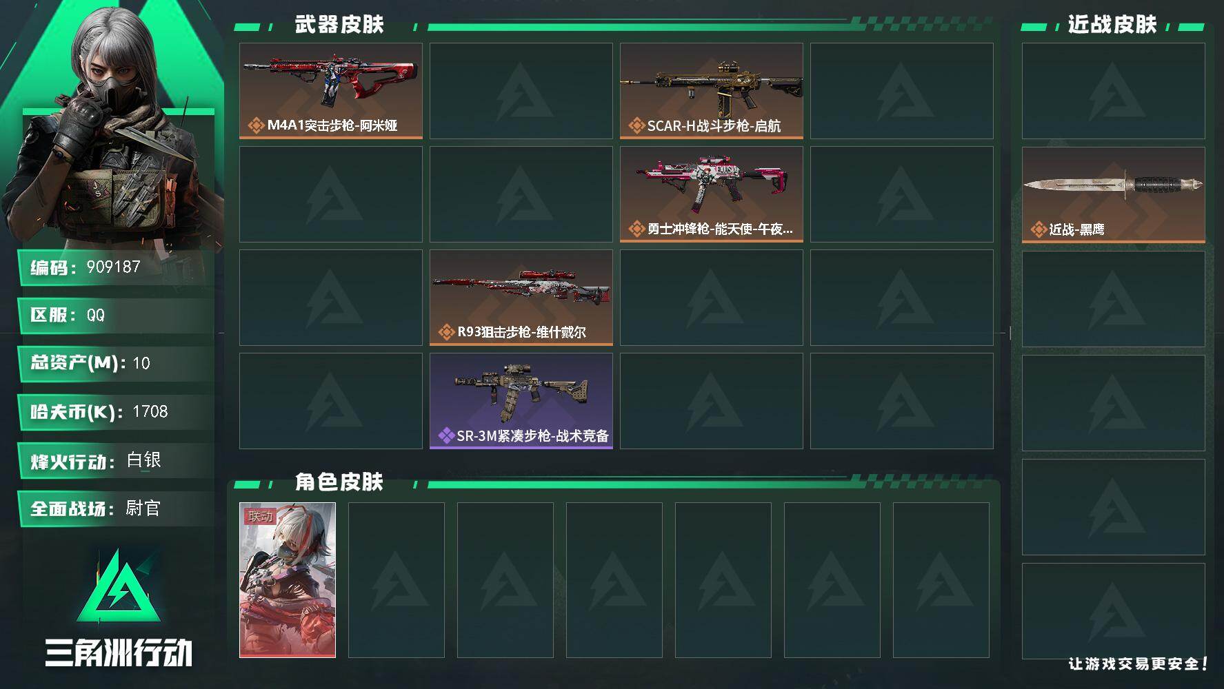 10m总资产-1708k哈夫币-31烽火等级-白银-32战场等级-尉官【干员