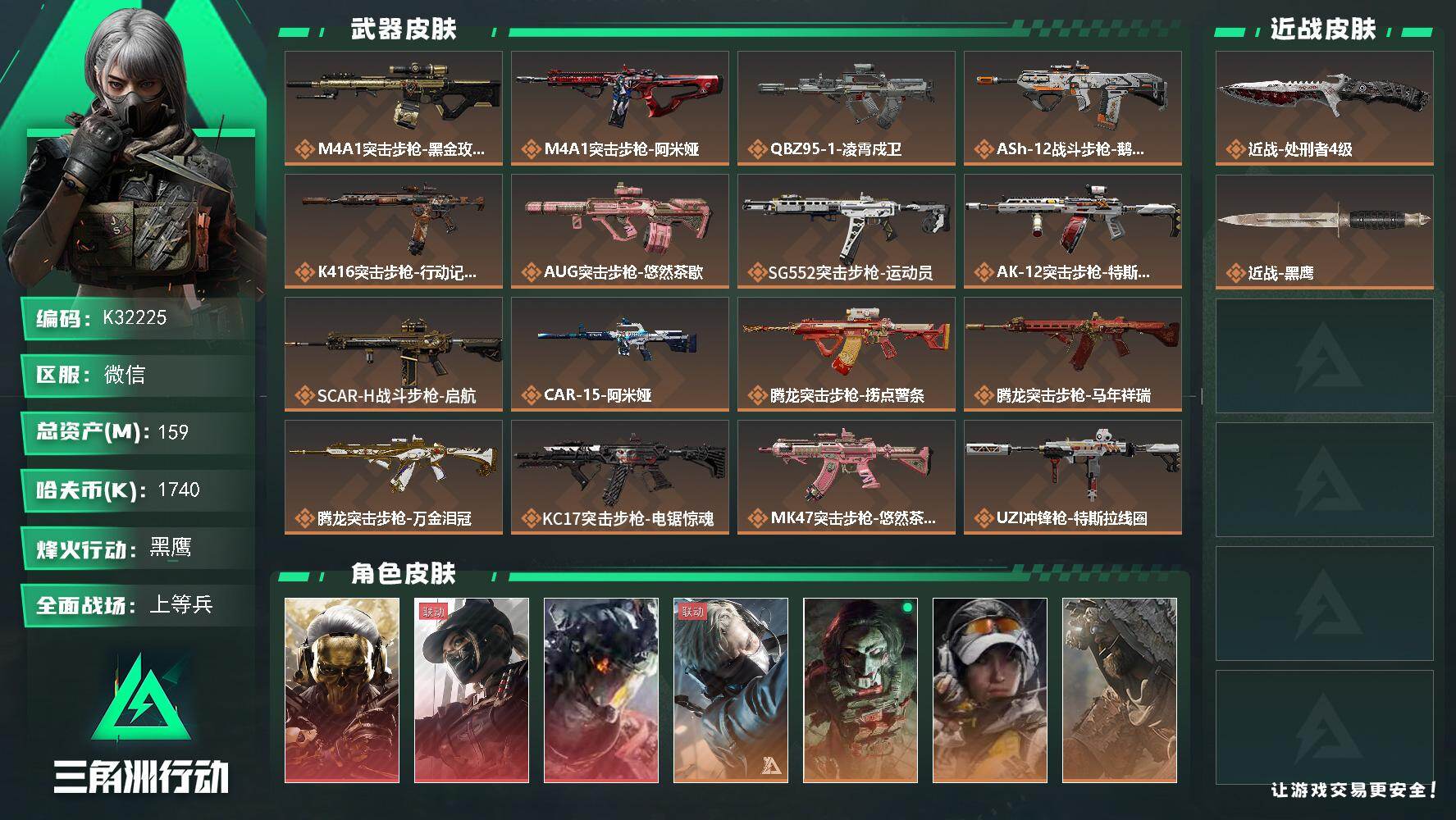 159m总资产-1740k哈伏币-60烽火等级-黑鹰-31战场等级-上等兵