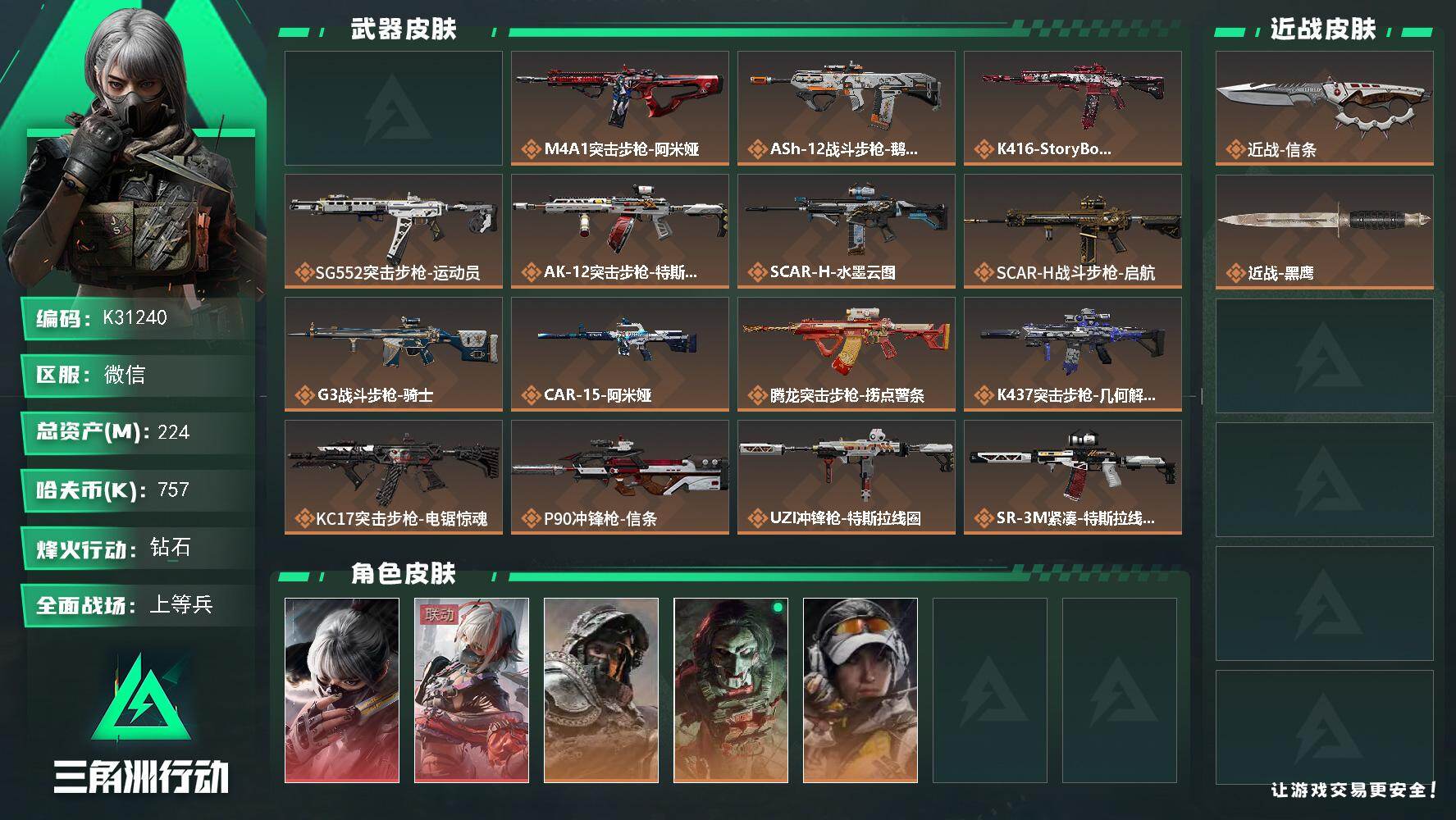 224m总资产-757k哈伏币-60烽火等级-钻石-20战场等级-上等兵