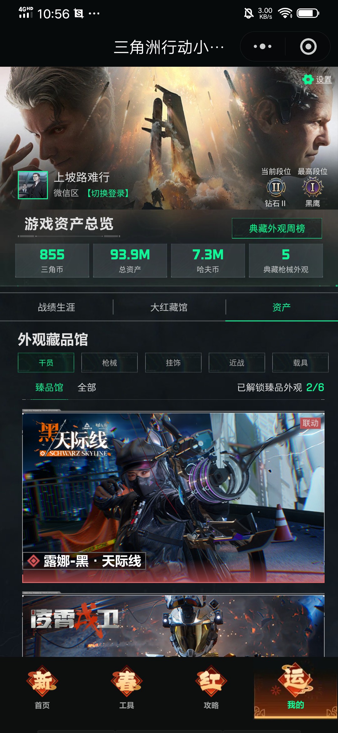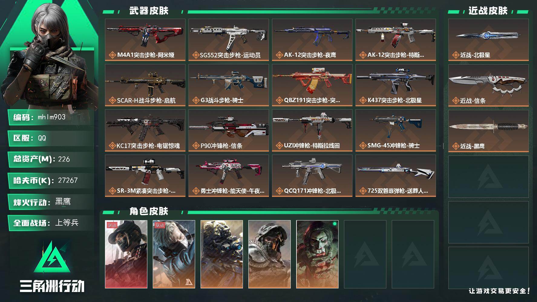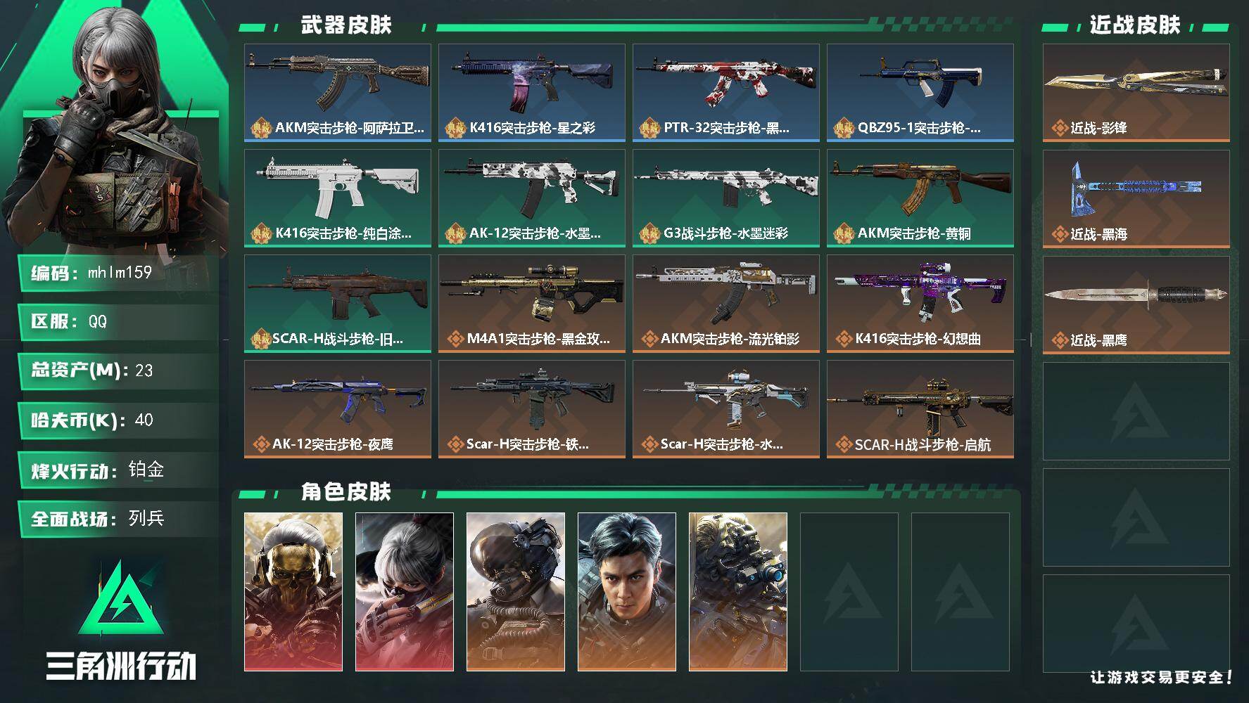 69650三角币 总资产:64.2M,哈夫币:186W,武器皮肤117,烽火4