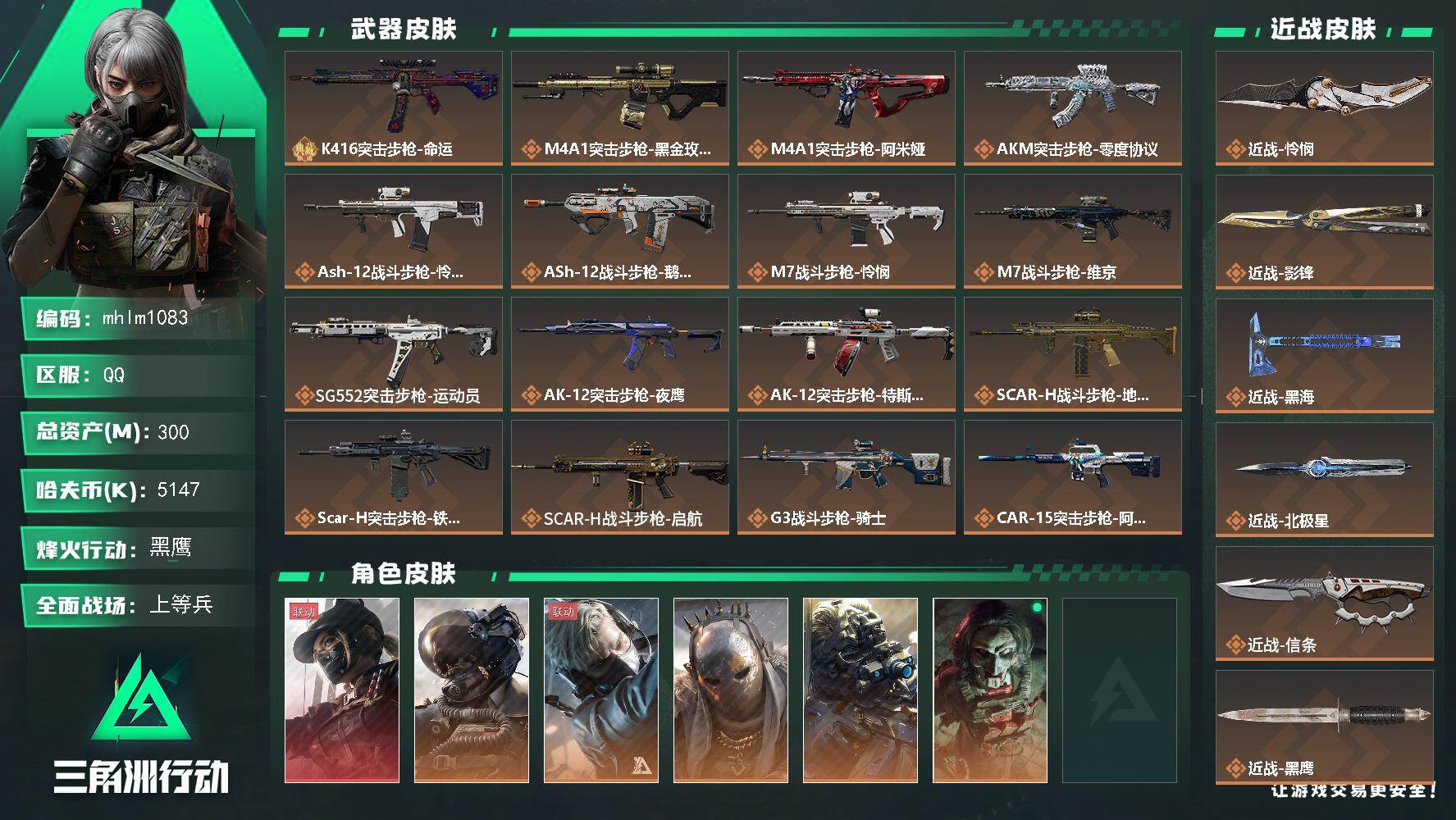 300m总资产-5147k哈伏币-60烽火等级-黑鹰-23战场等级-上等兵
