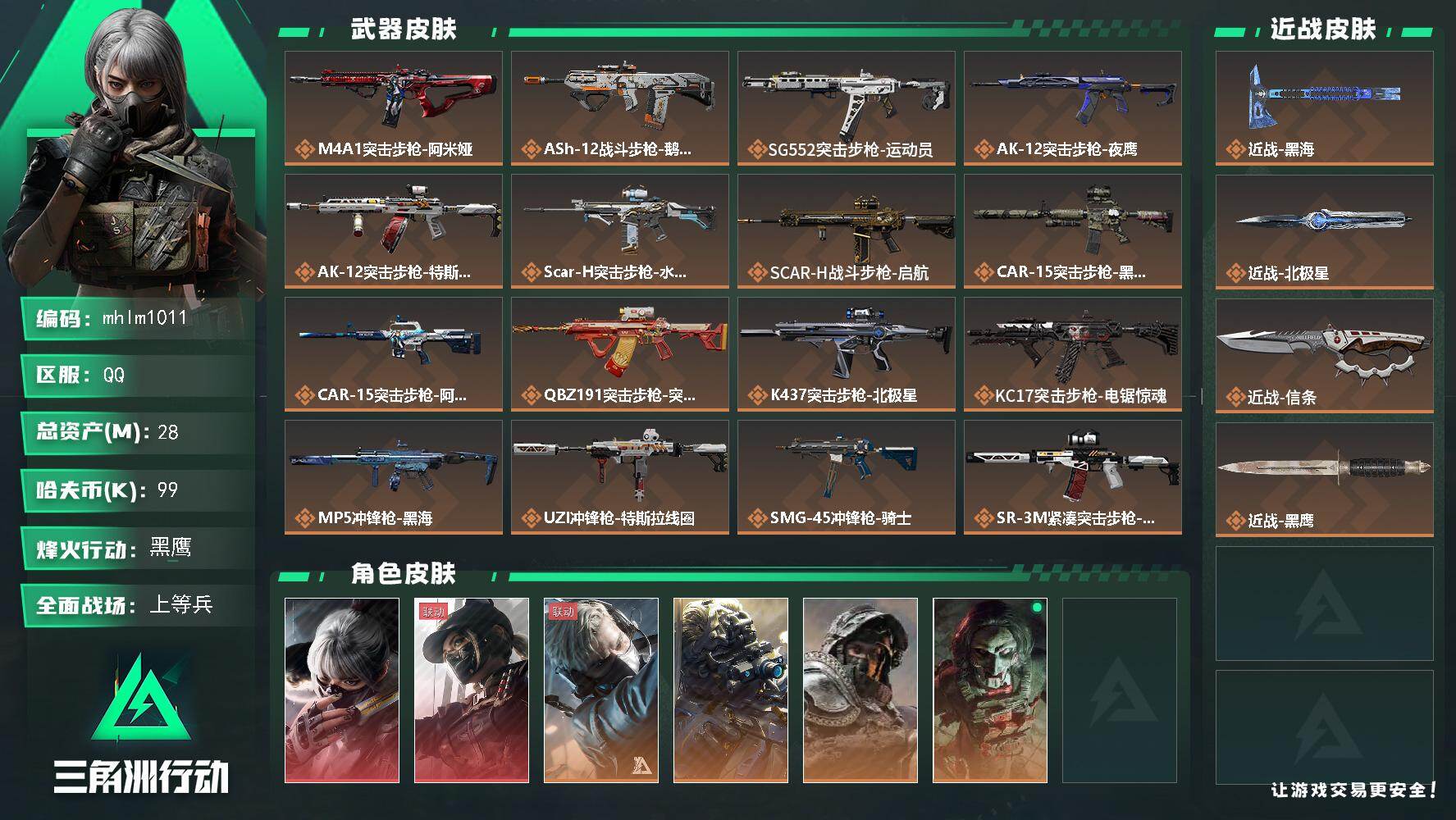 28m总资产-99k哈伏币-60烽火等级-黑鹰-31战场等级-上等兵【干员外