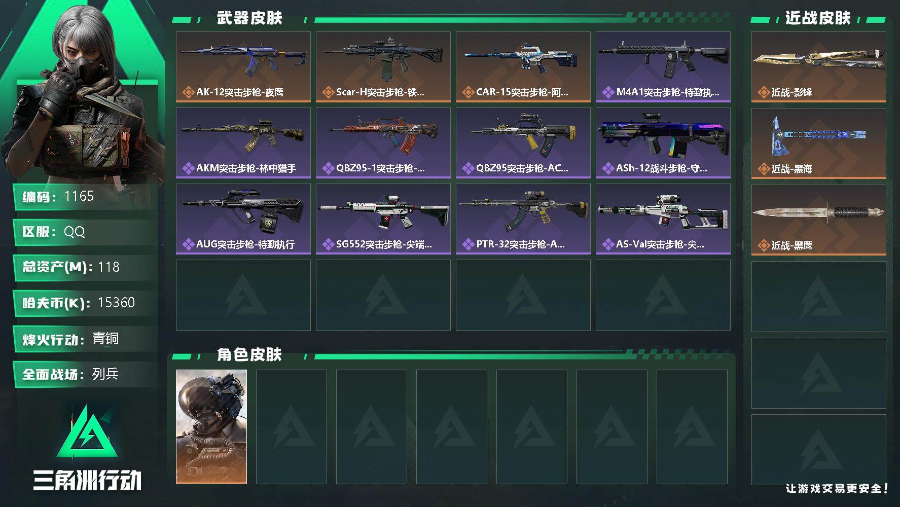 总资产:117.8M,哈夫币:1536W,武器皮肤125,烽火60级:青铜,战