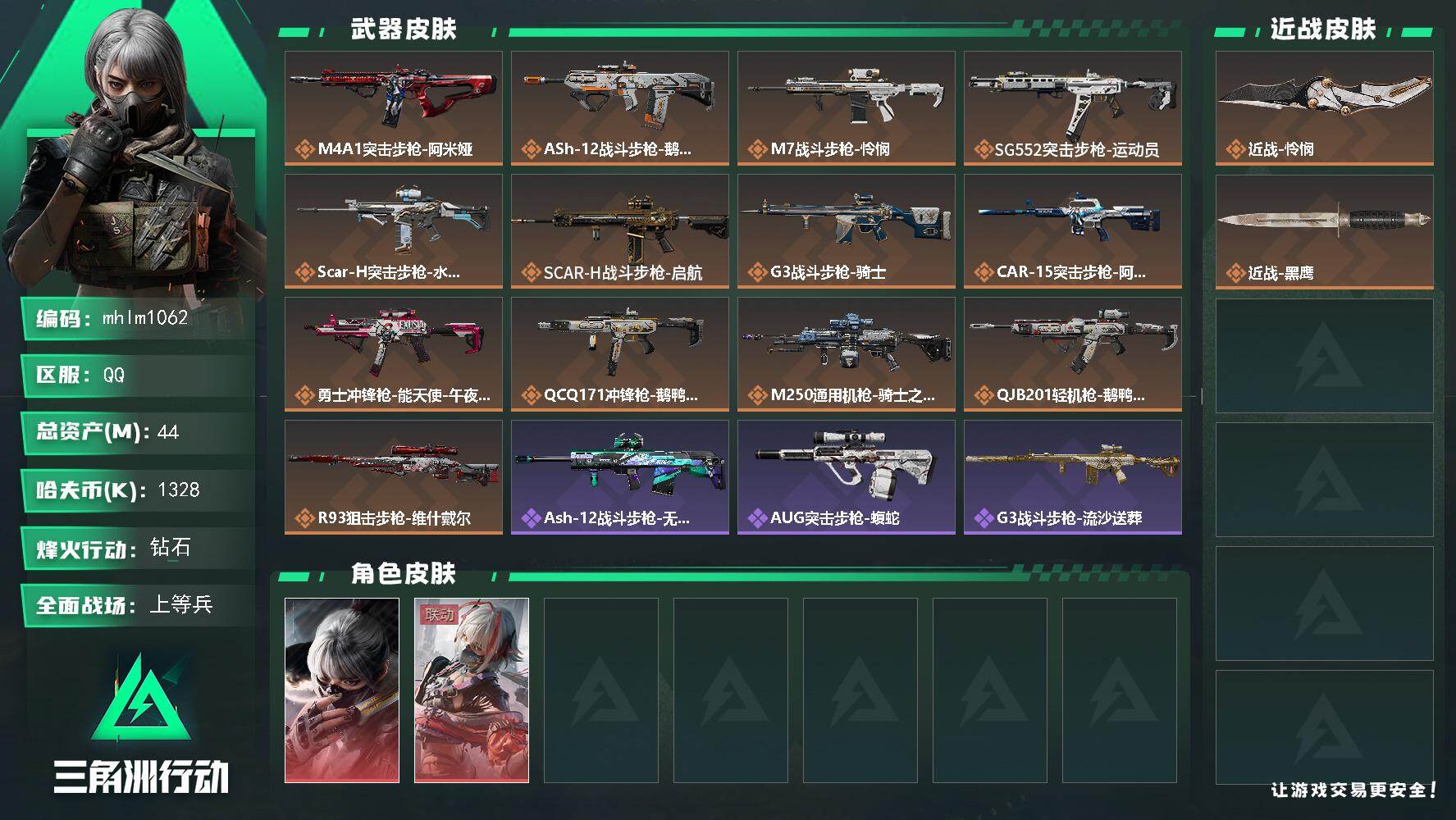 44m总资产-1328k哈伏币-60烽火等级-钻石-34战场等级-上等兵【干