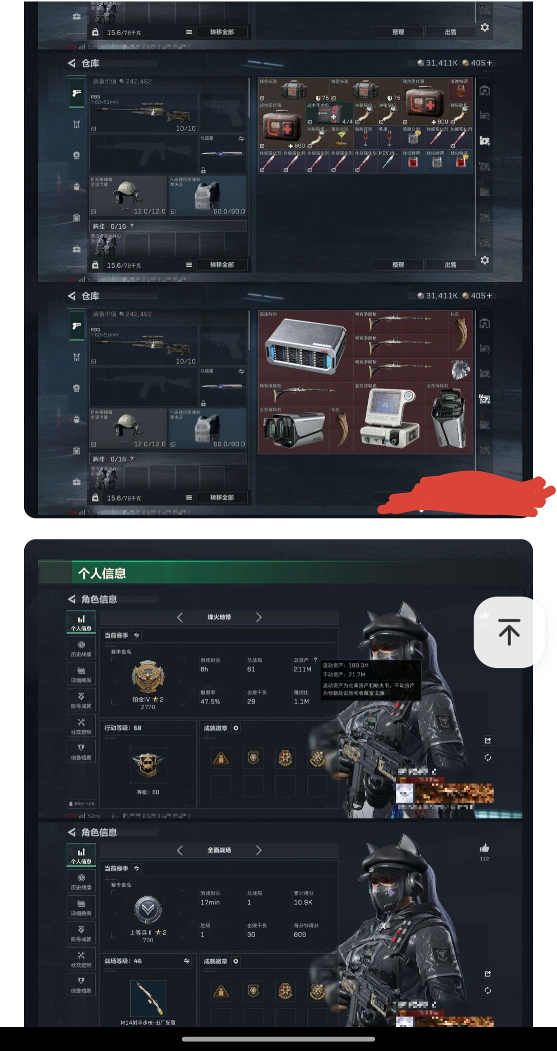 367m仓库 181m纯币 满体满负 3x3保险 70发AP 34m收藏室 仓库多红和装备 可二次
