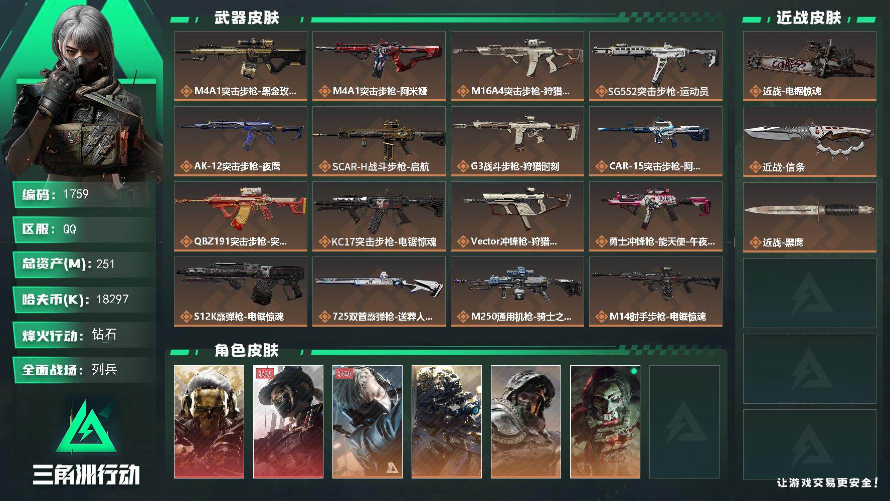 总资产(M):251M/哈夫币(K):18297K/哈夫币(K):18297K/全面战场等级:24_