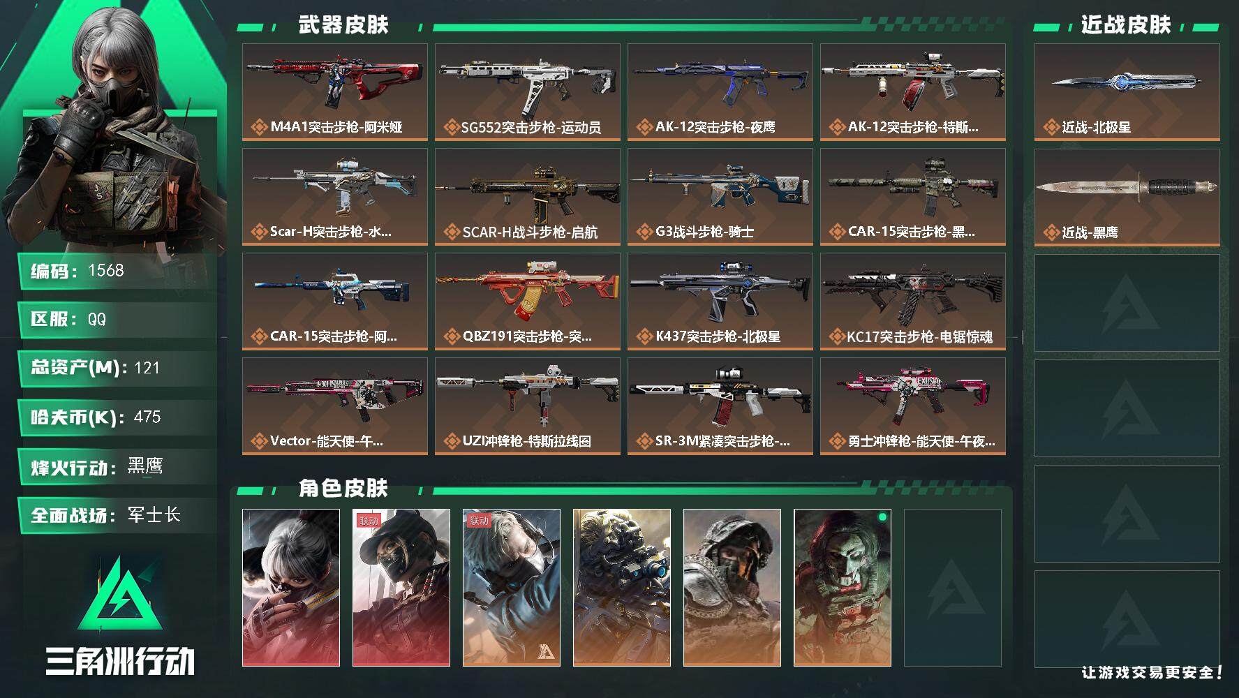 总资产(M):121M/哈夫币(K):475K/哈夫币(K):475K/传说枪皮数:22/全面战场等