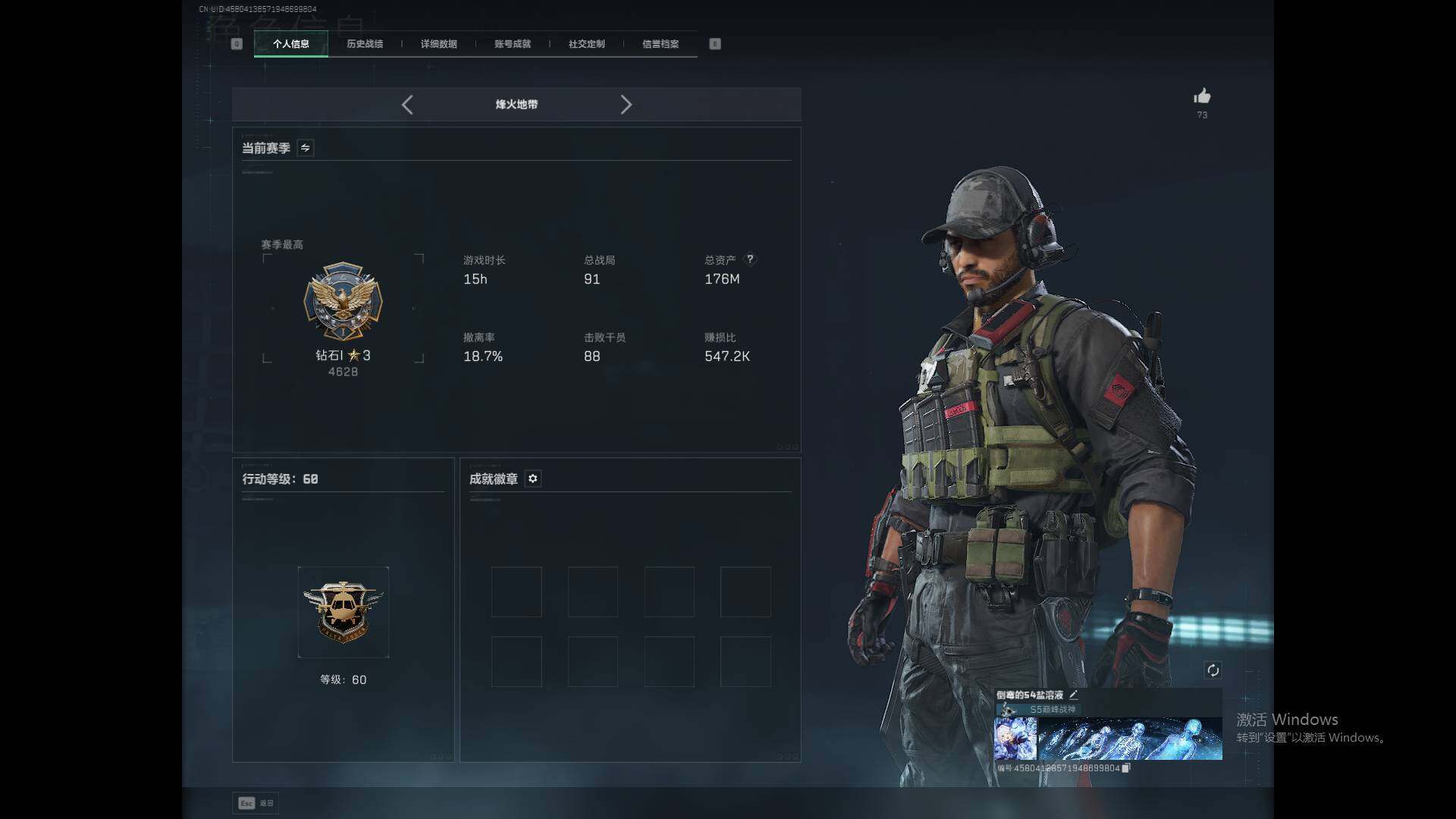 【SJ720】行动等级:60 总资产:32.9M 哈夫币:497.7W 近战武