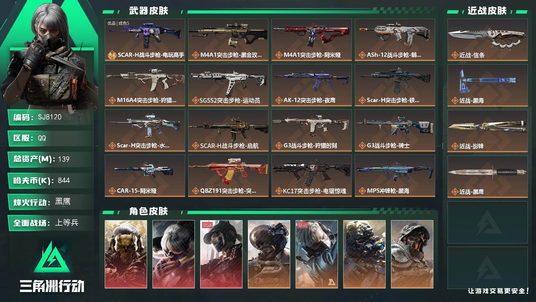 总资产(M):139M/哈夫币(K):844K