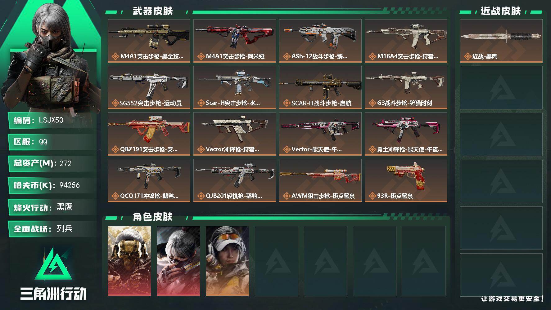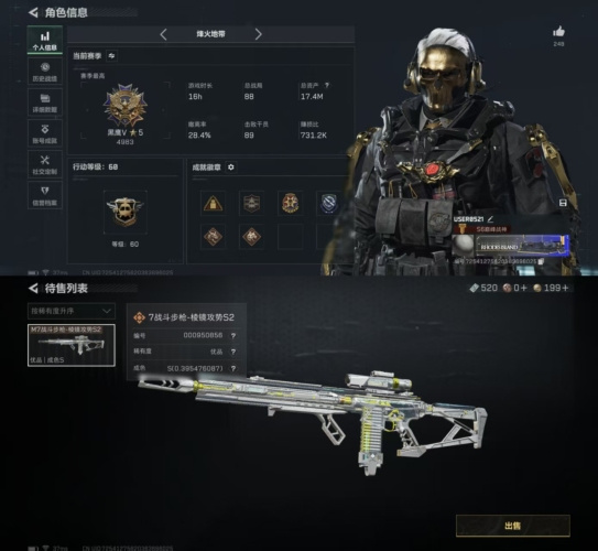 【msjz52】10m总资产-237k哈伏币-60烽火等级-黑鹰-50战场等级