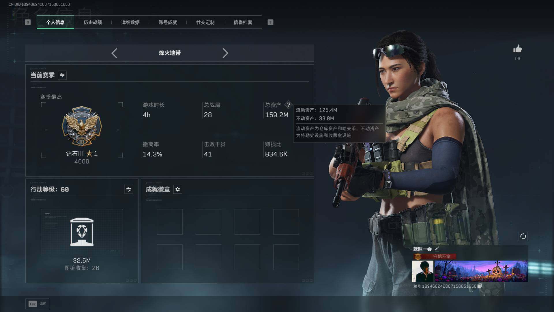 286m总资产-35276k哈伏币-60烽火等级-黑鹰-15战场等级-上等兵