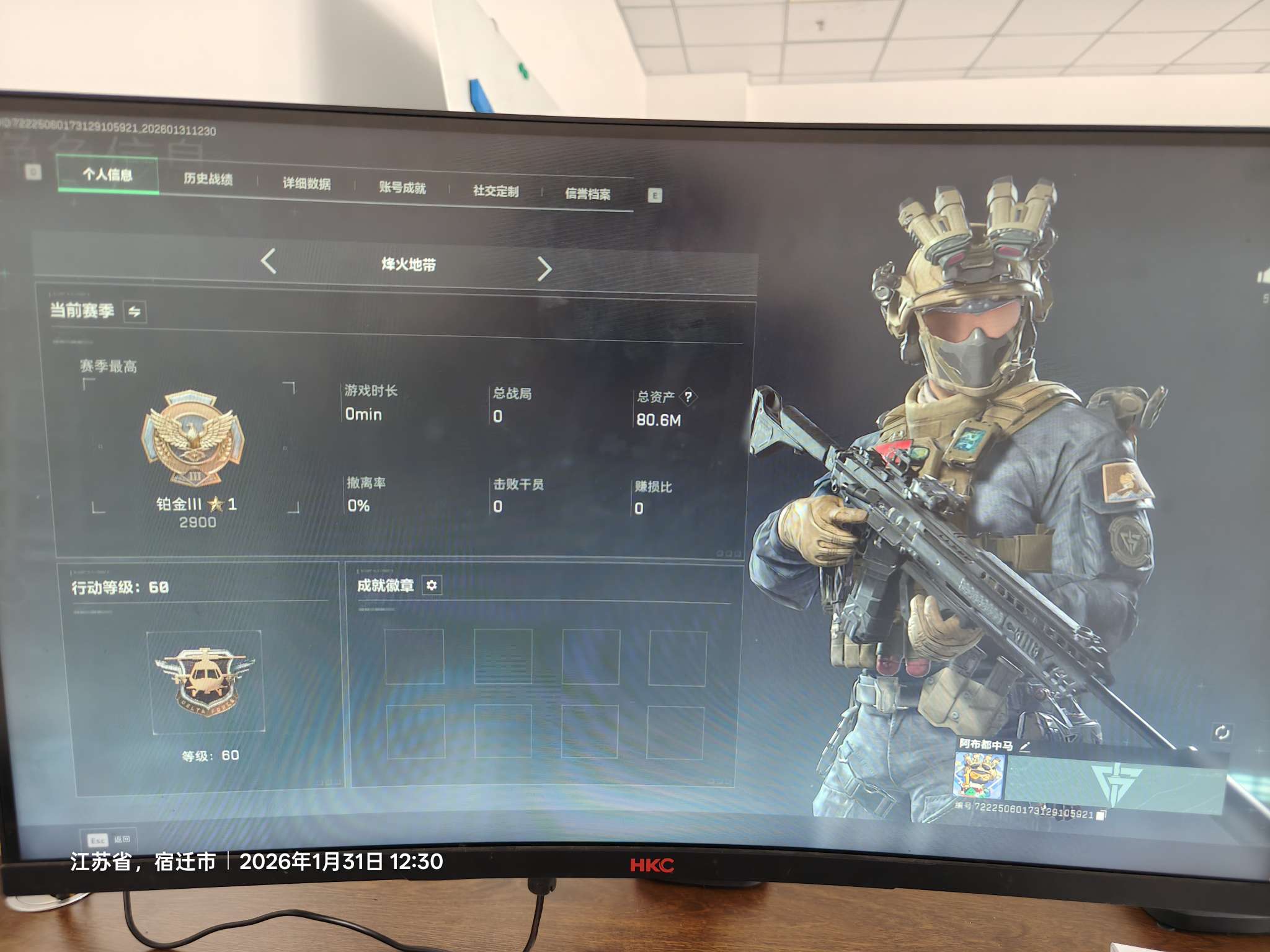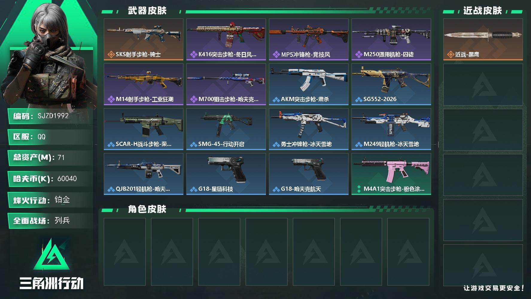 47m总资产-1671k哈伏币-60烽火等级-黑鹰-32战场等级-上等兵【干