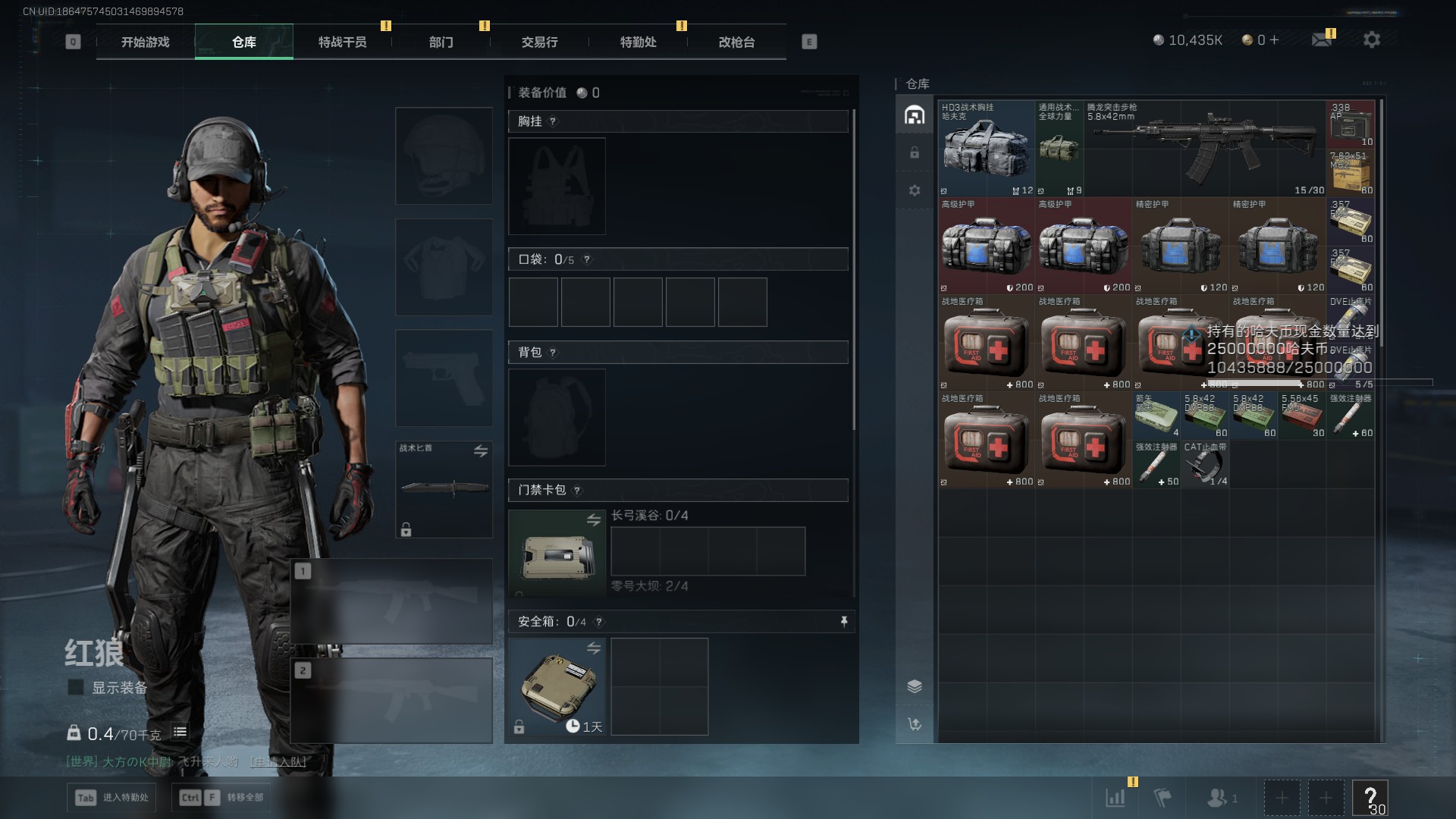 可二次 等级58 烽火地带黄金4 总资产158m 流动资产148m 哈夫币593k 2干原皮 1红皮