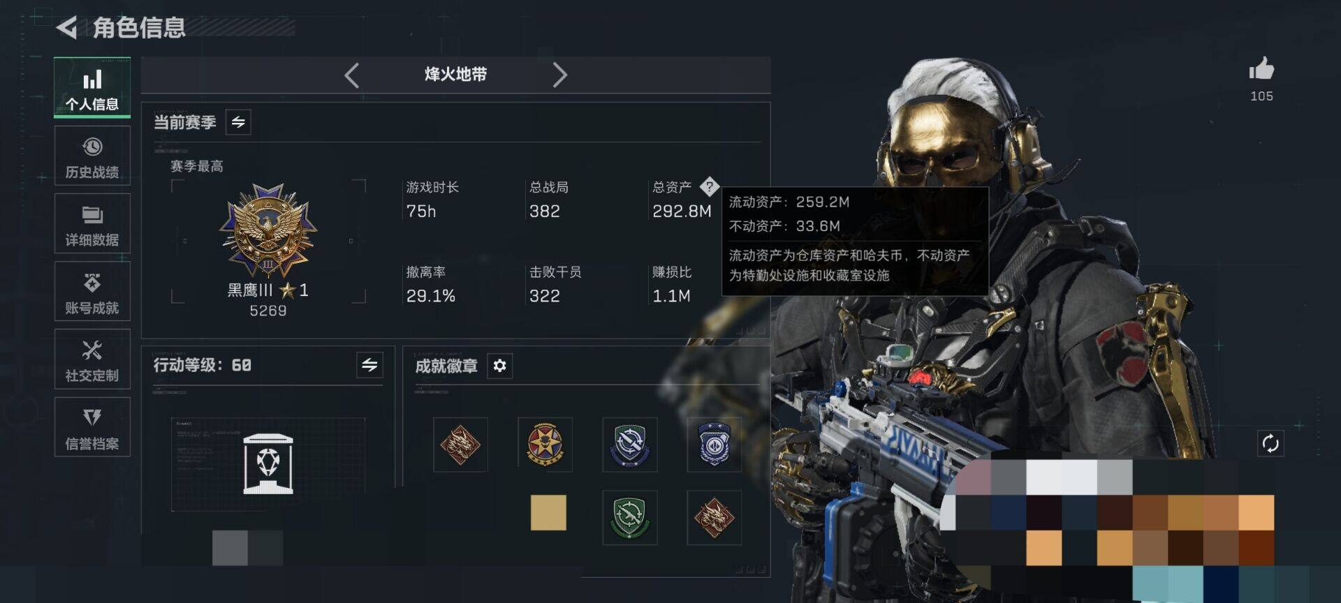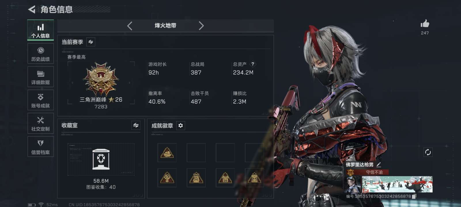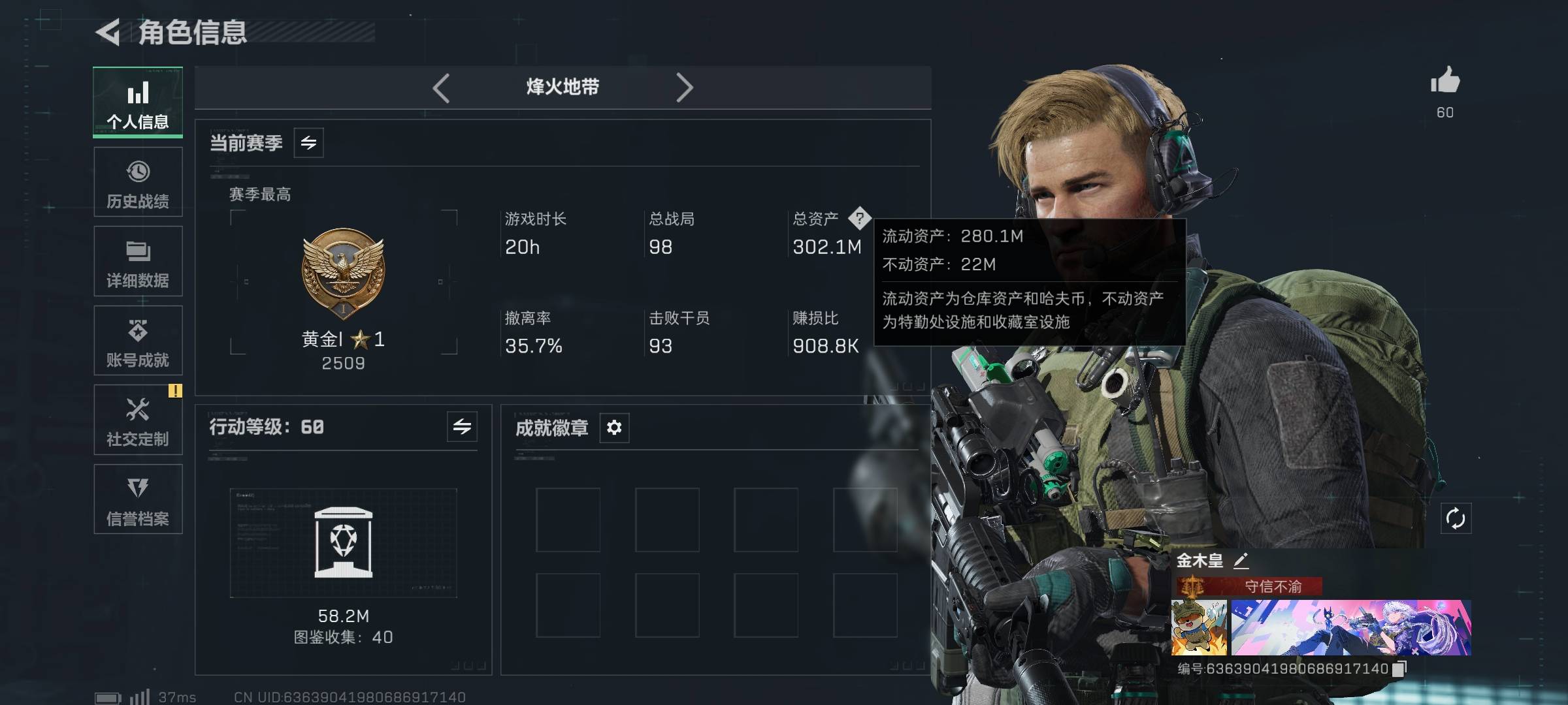 总资产(M):95M/哈夫币(K):228K/哈夫币(K):228K/全面战场等级:40_段位:上等