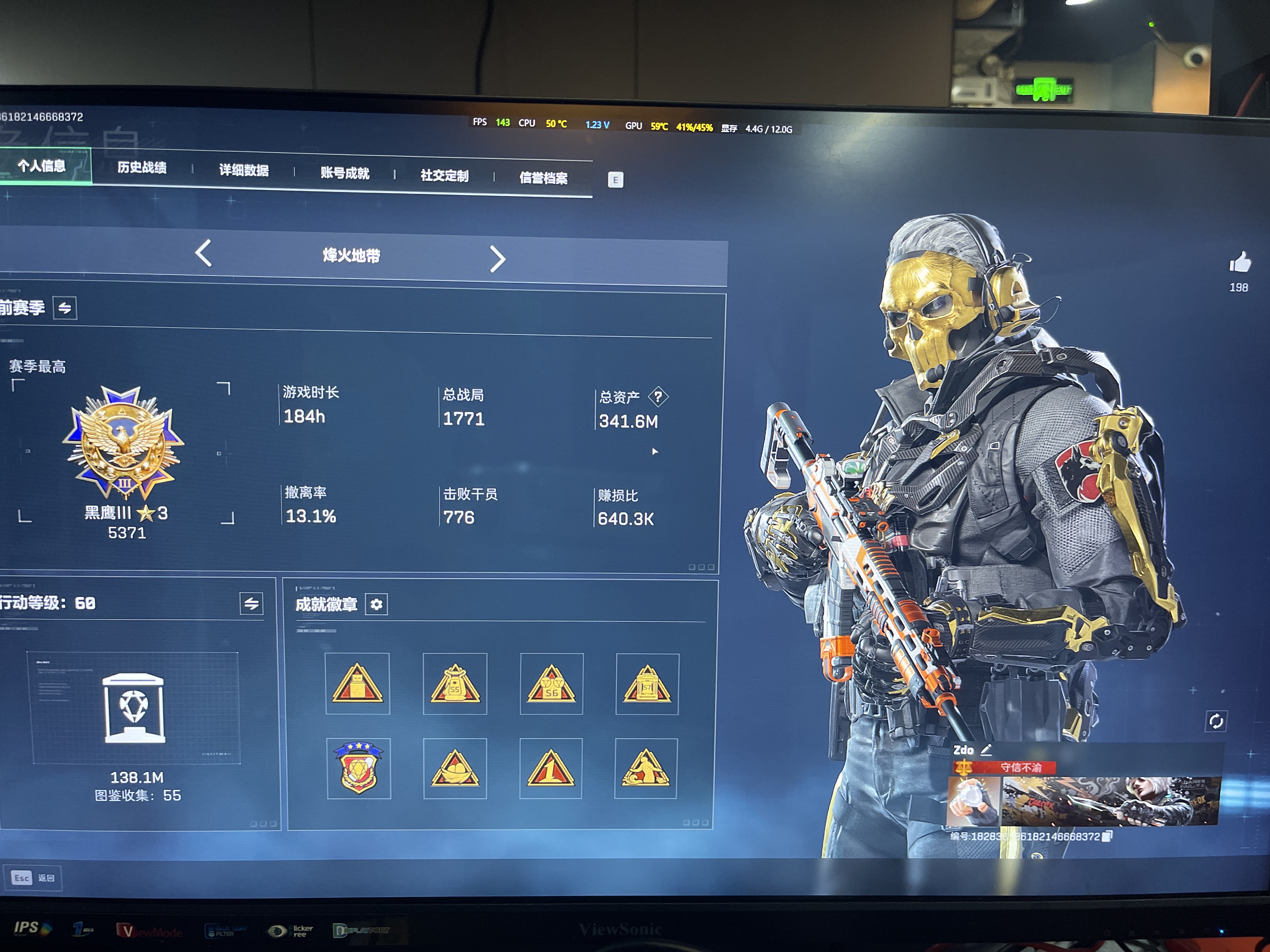 总资产(M):18M/哈夫币(K):417K/哈夫币(K):417K/传说枪皮数:24/全面战场等级