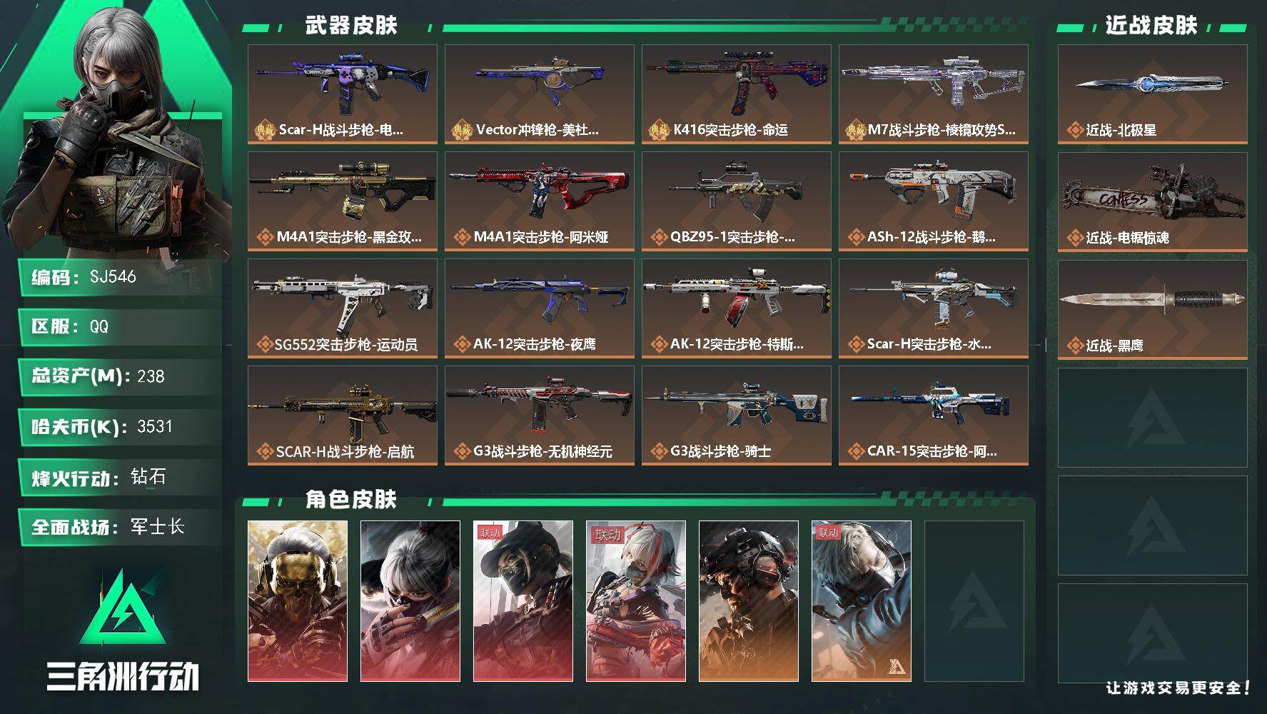 【SJ546】行动等级:60级 总资产:238M 流动资产:141.8M 哈夫