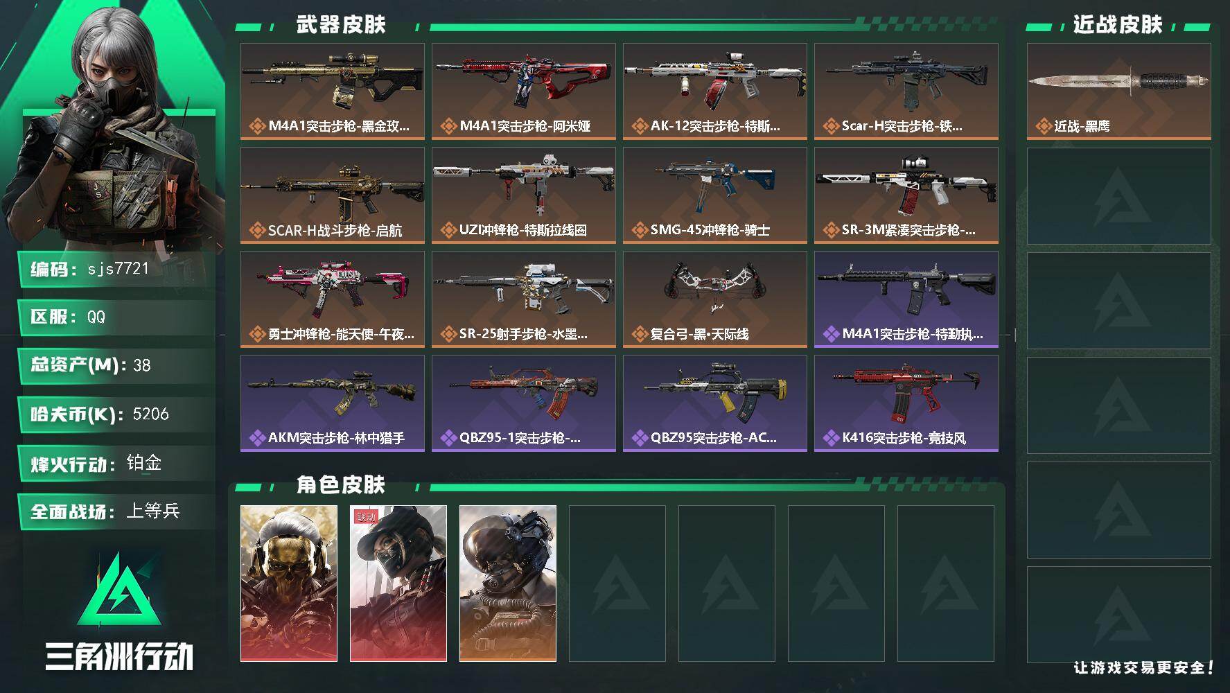 总资产30m 红狼 露娜 烽火地带段位: 铂金 全面战场段位: 上等兵 总资产: 38000000 哈夫币: 5206000