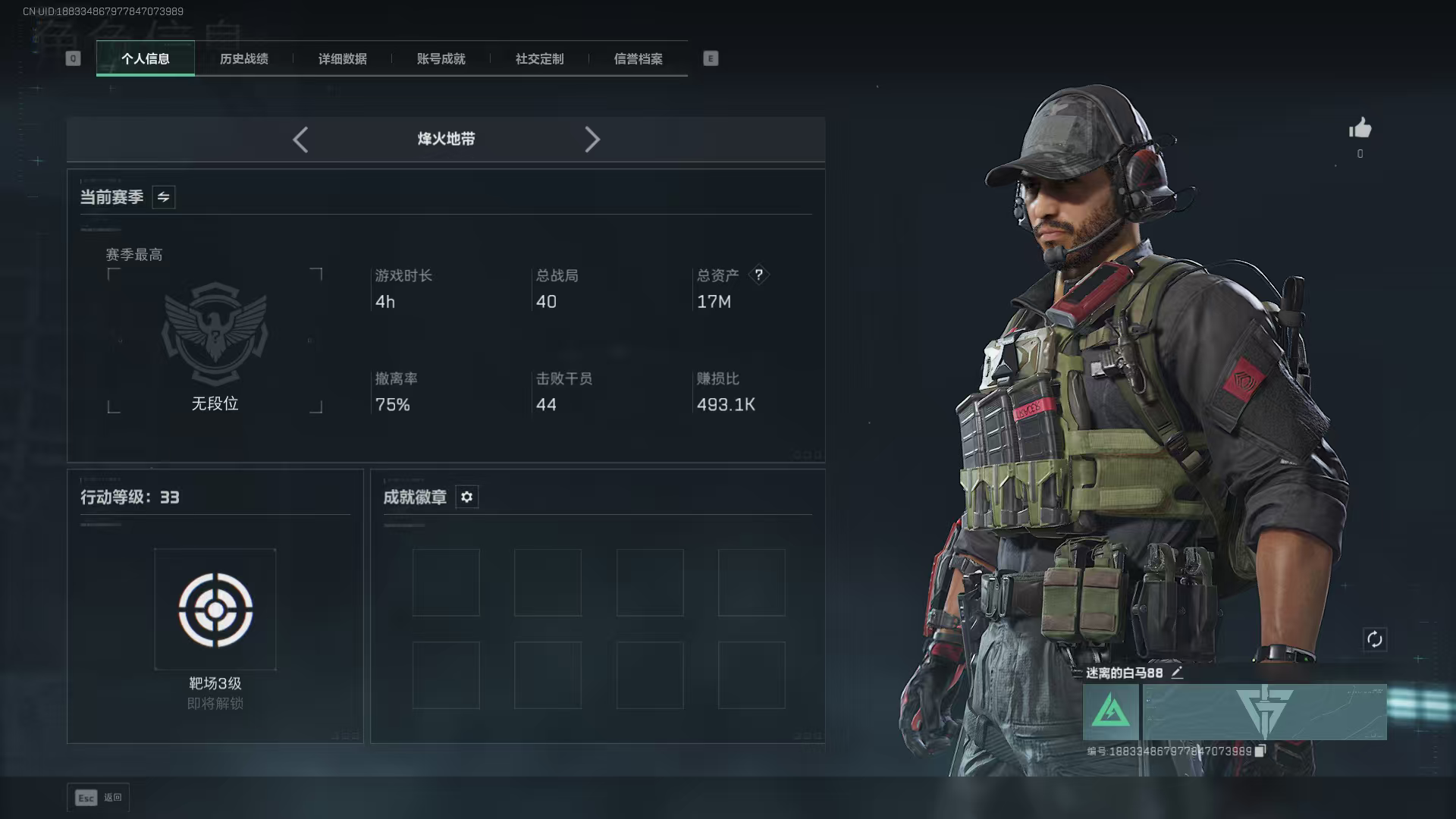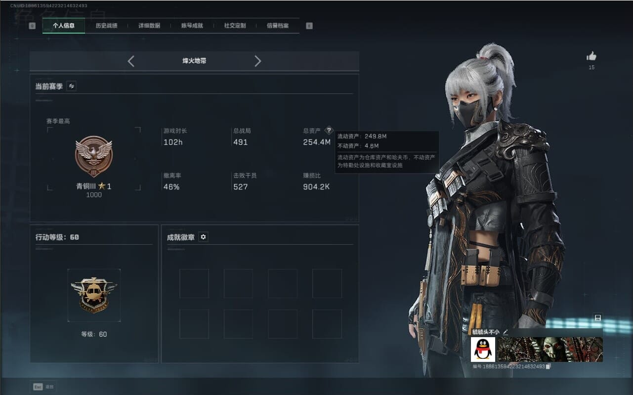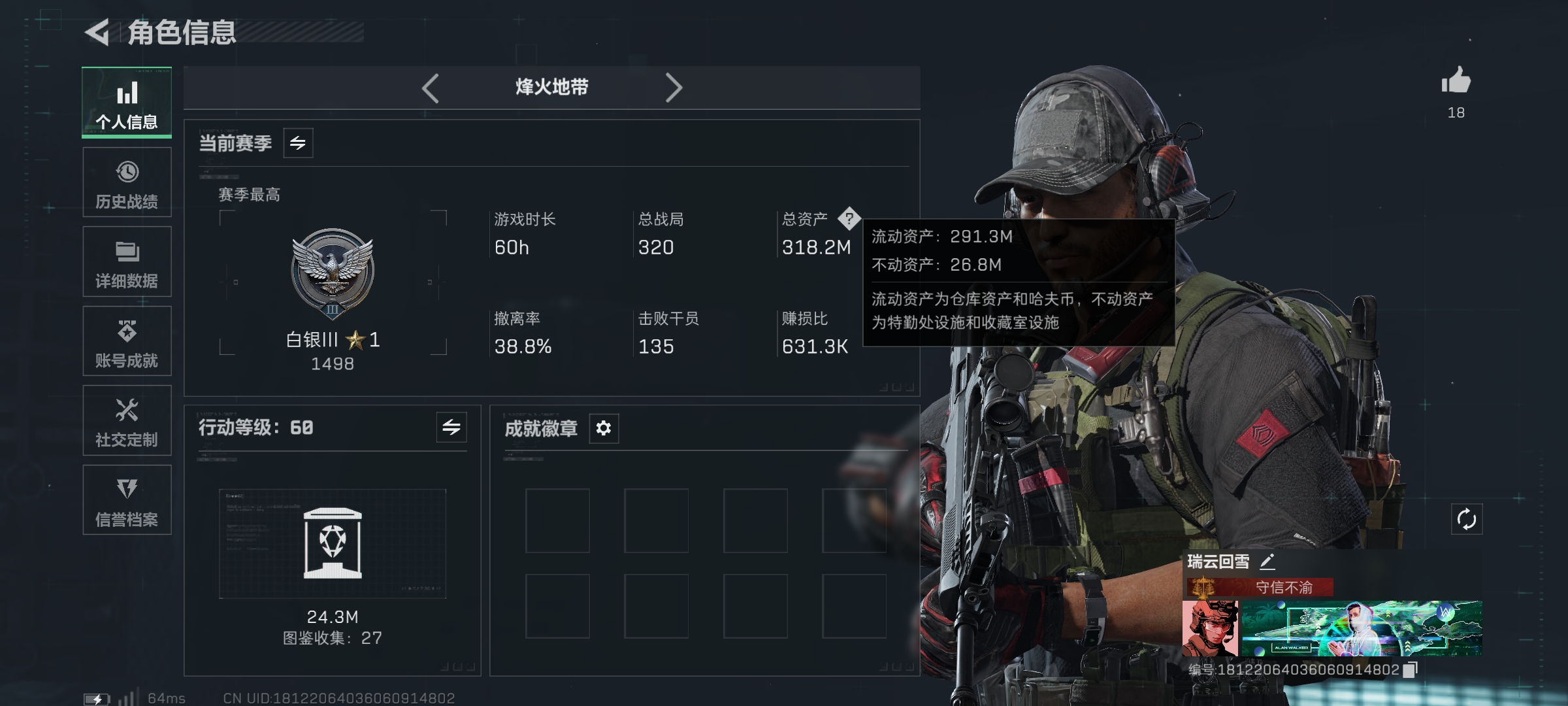总资产(M) 22m 哈夫币 8887k 行动等级 60