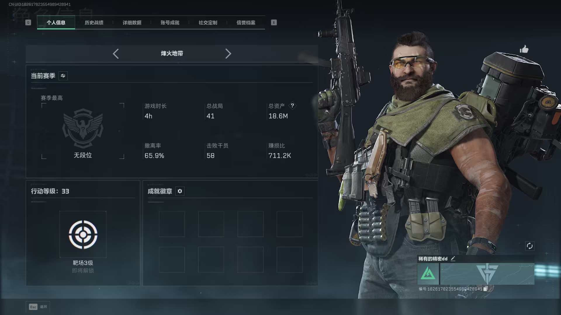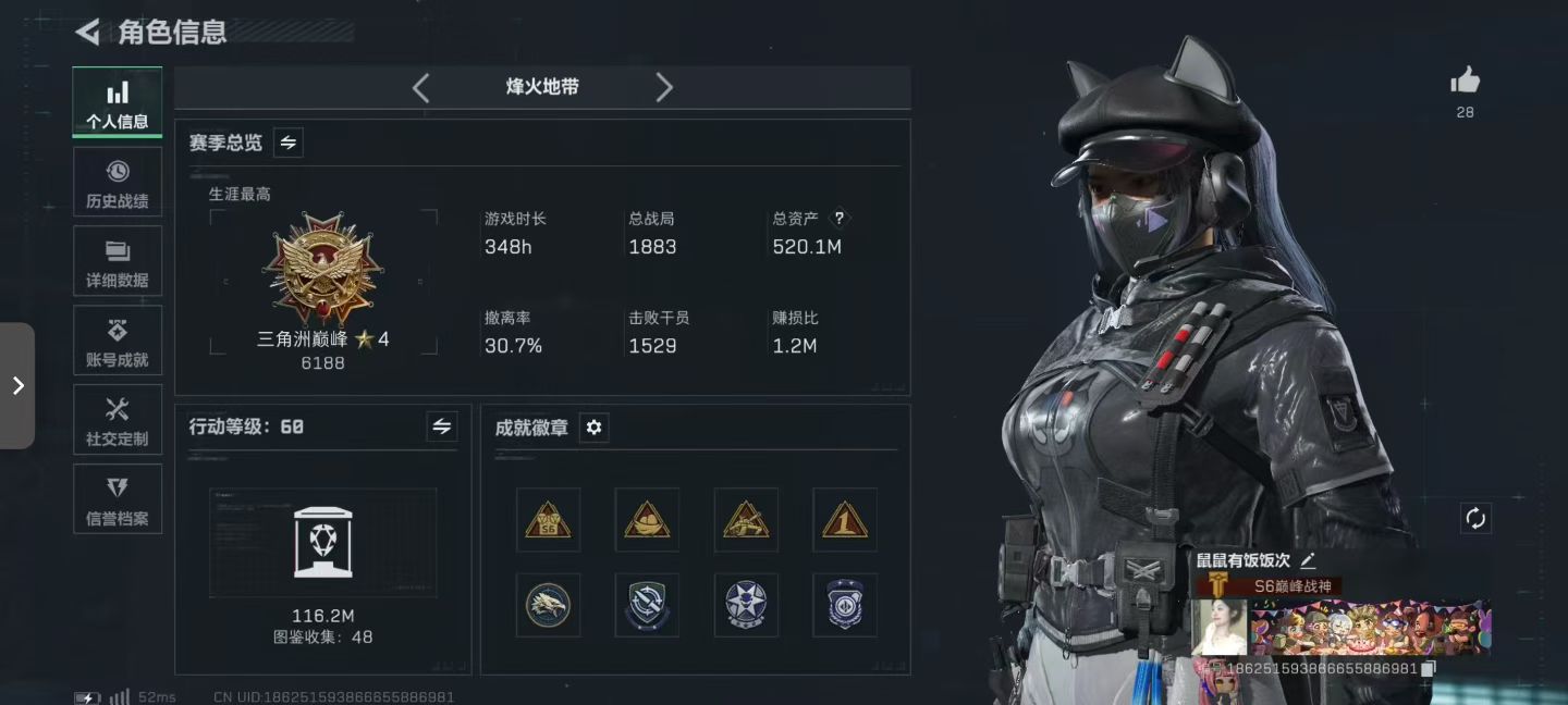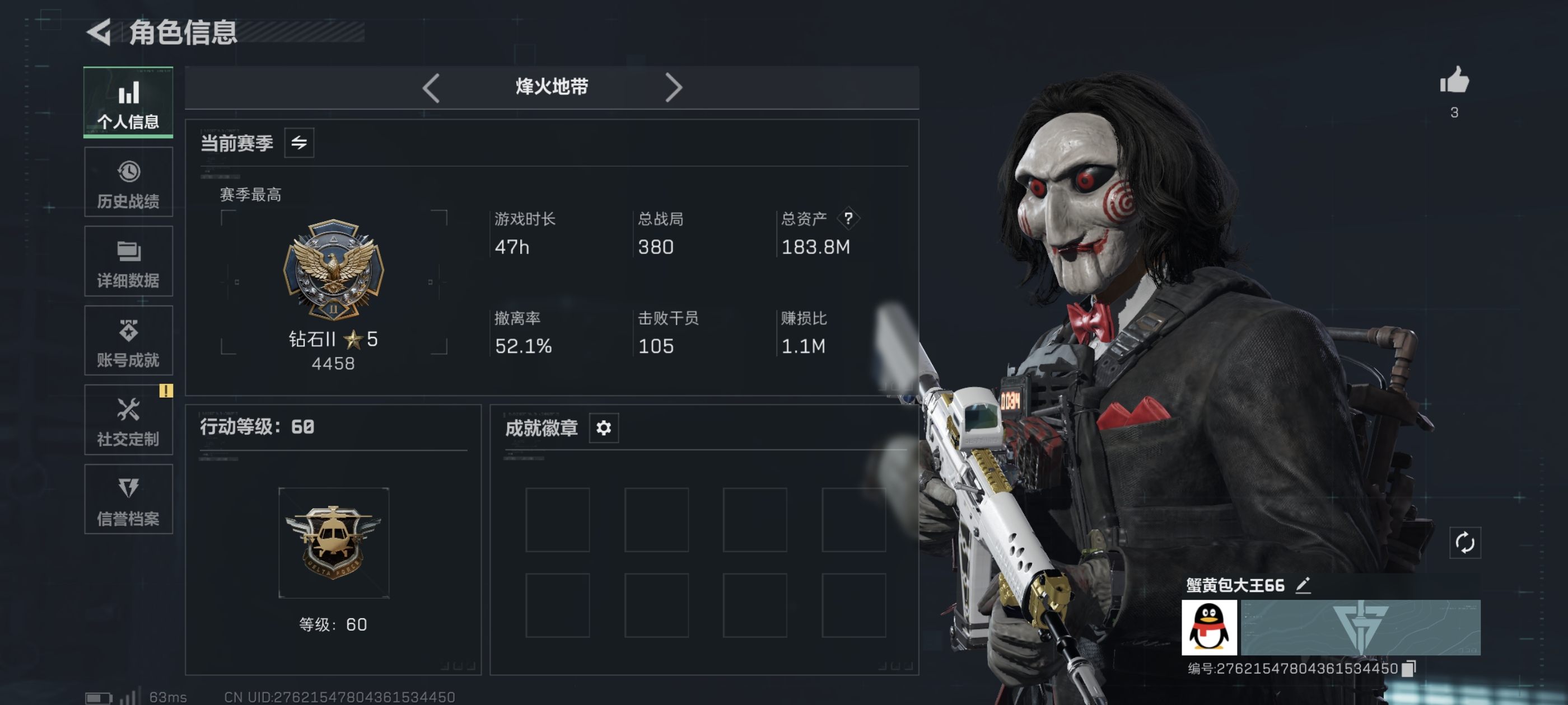 总资产(M) 22m 哈夫币 8887k 行动等级 60