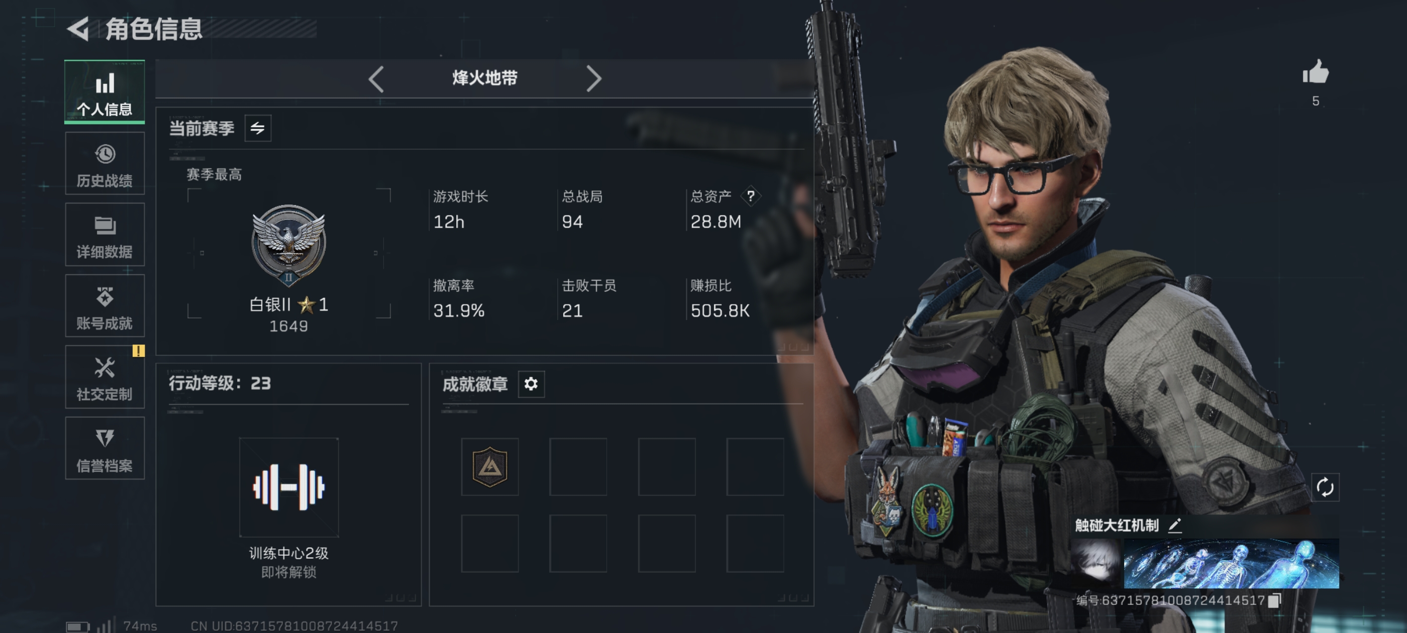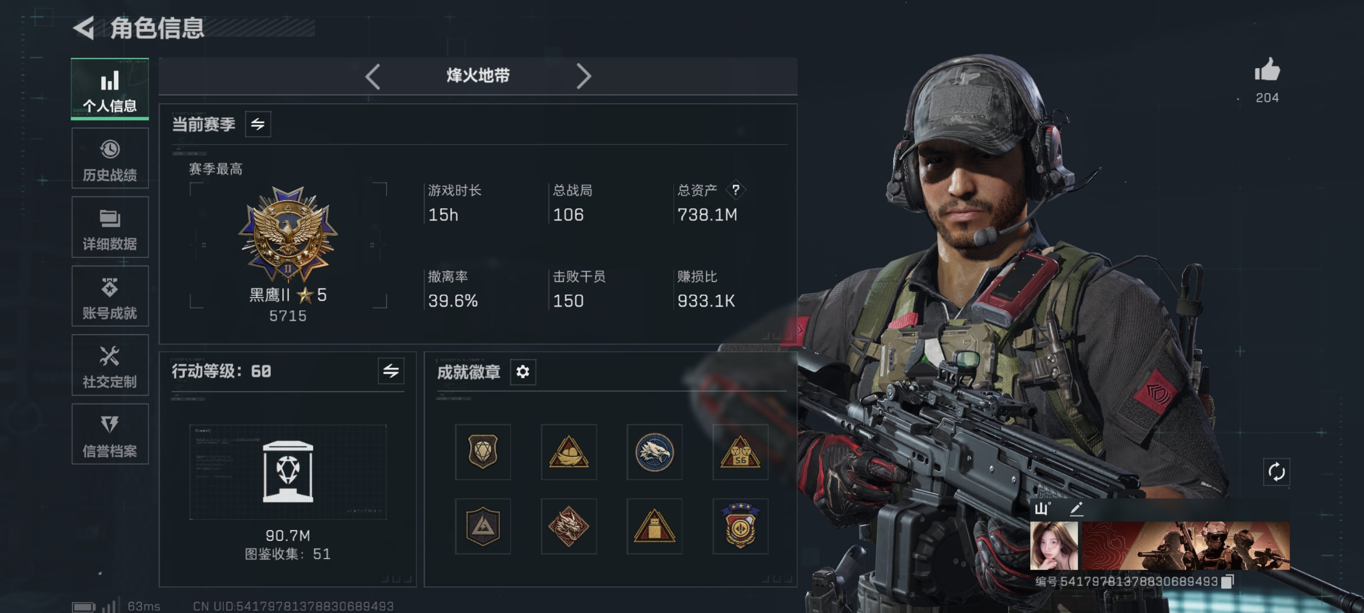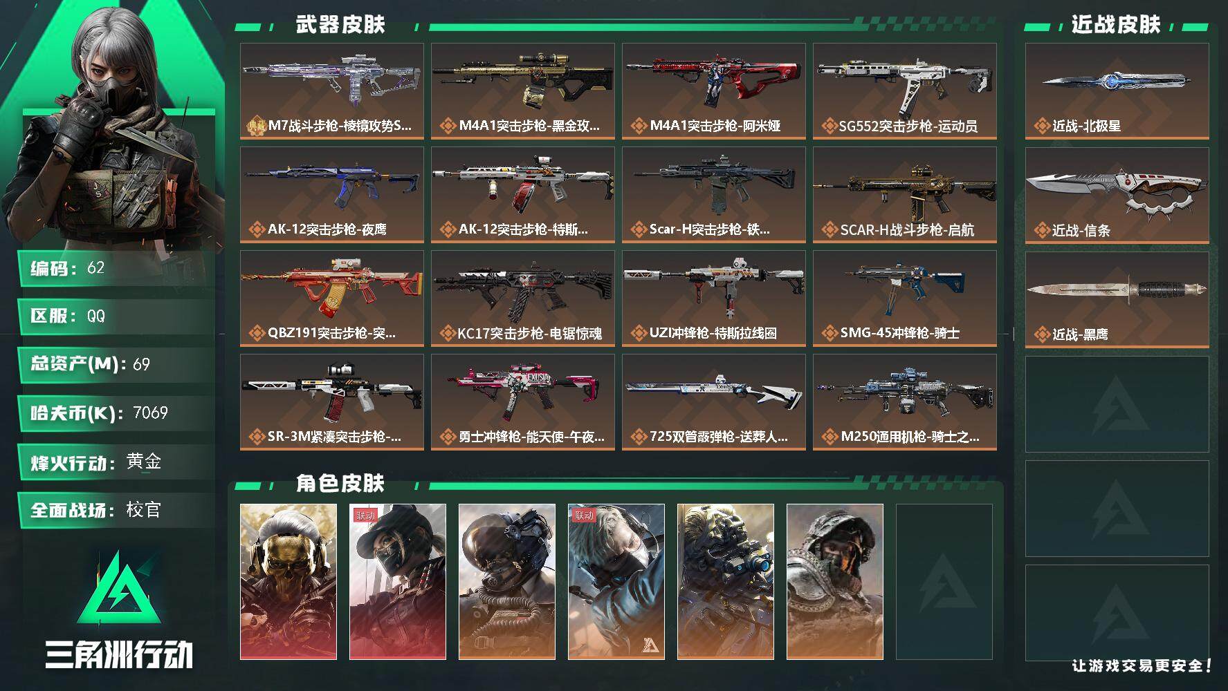 69m总资产-7069k哈伏币-60烽火等级-黄金-43战场等级-校官LL55