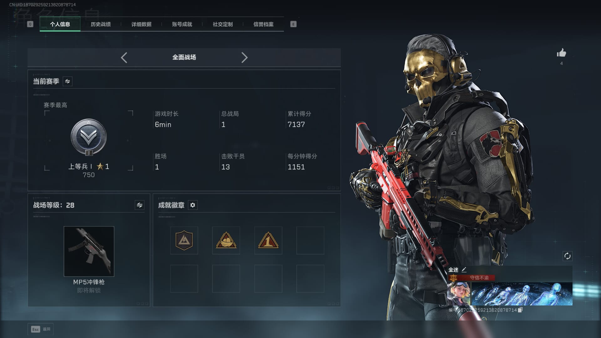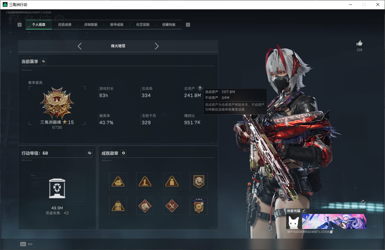 总资产(M):134M/哈夫币(K):1244K/哈夫币(K):1244K/传说枪皮数:22/全面战