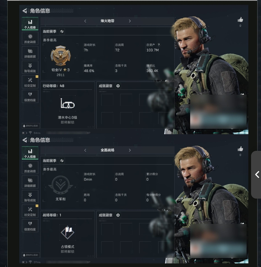 95m总资产-834k哈伏币-60烽火等级-铂金-14战场等级-列兵,YY16