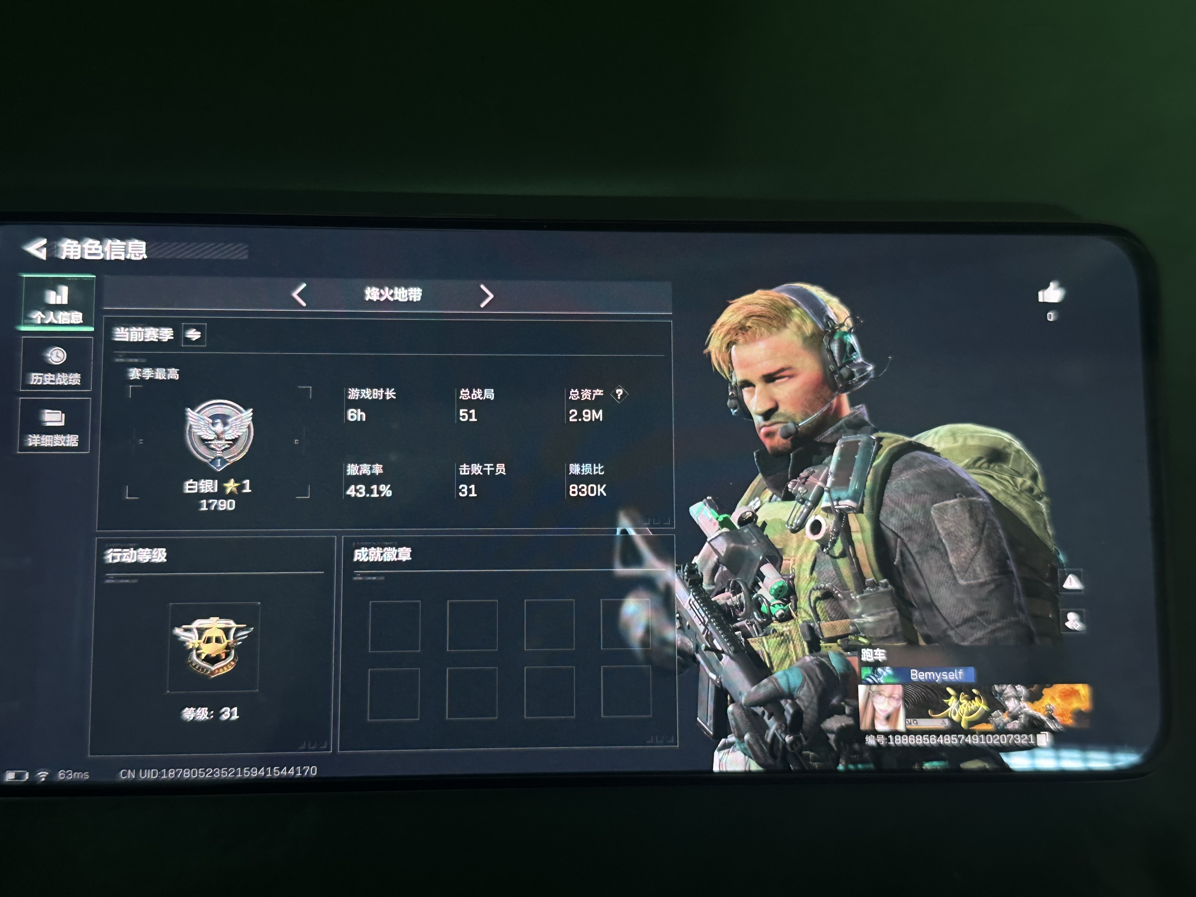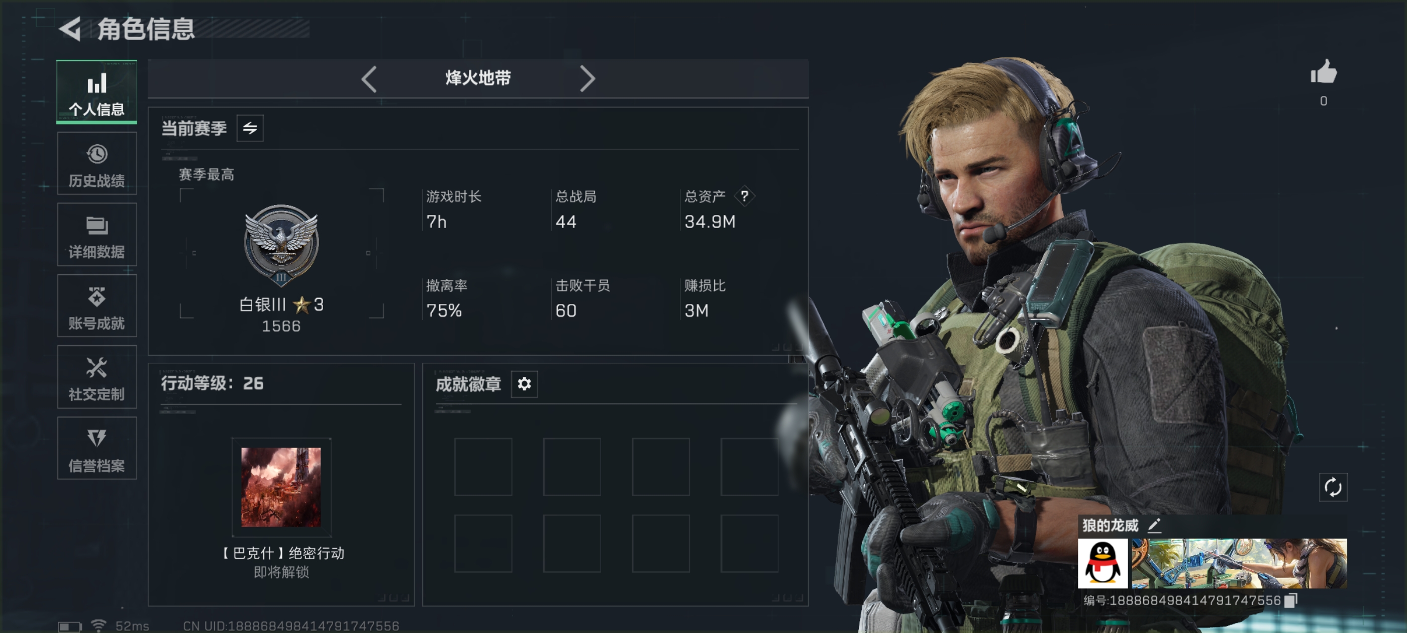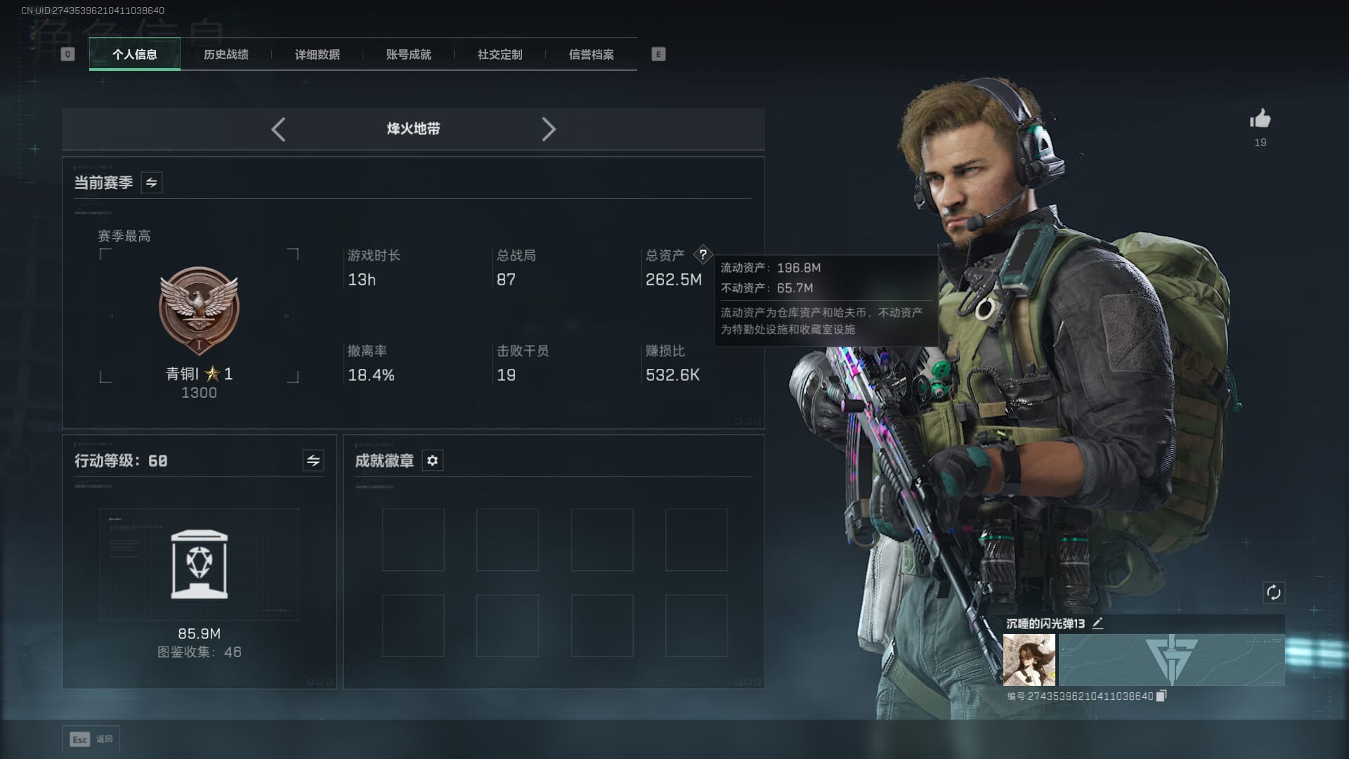 【总资产(M)】80.6m【哈夫币】16298k【行动等级】58