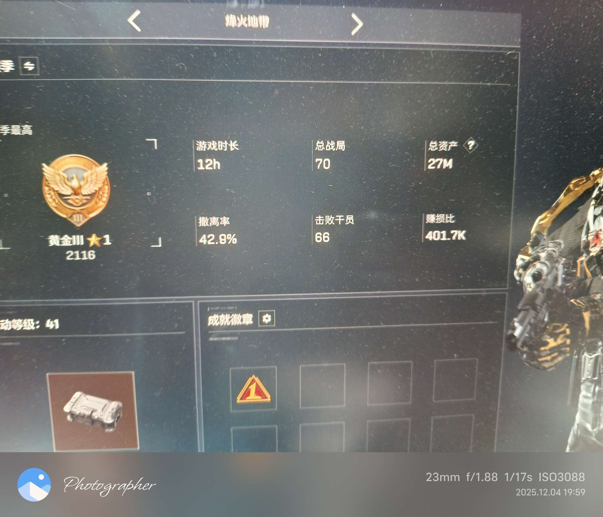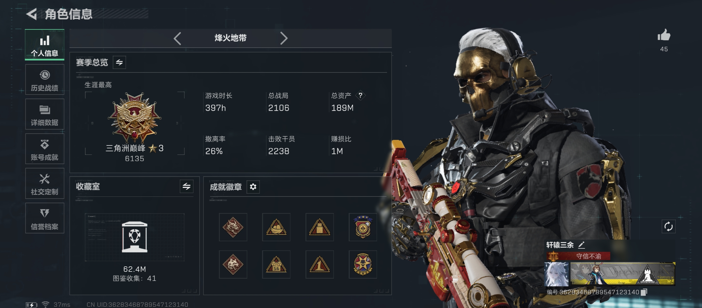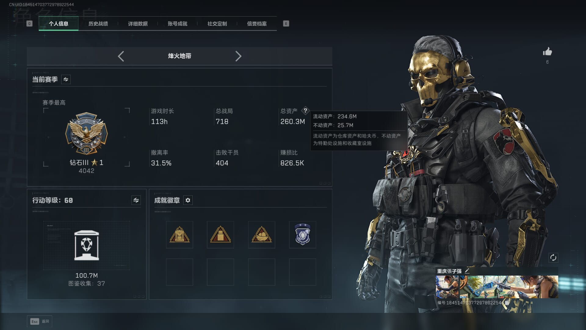 【总资产(M)】80.6m【哈夫币】16298k【行动等级】58