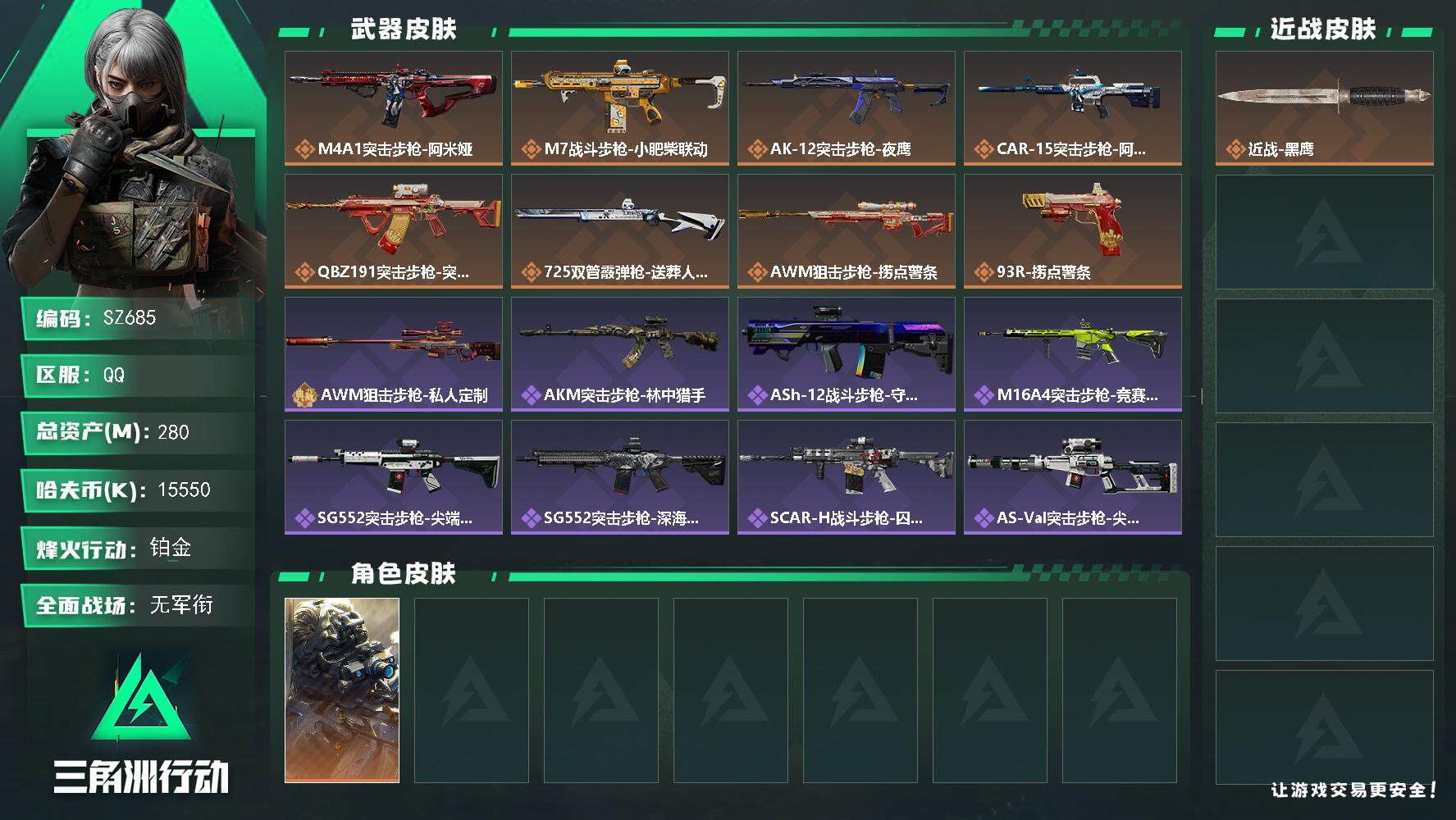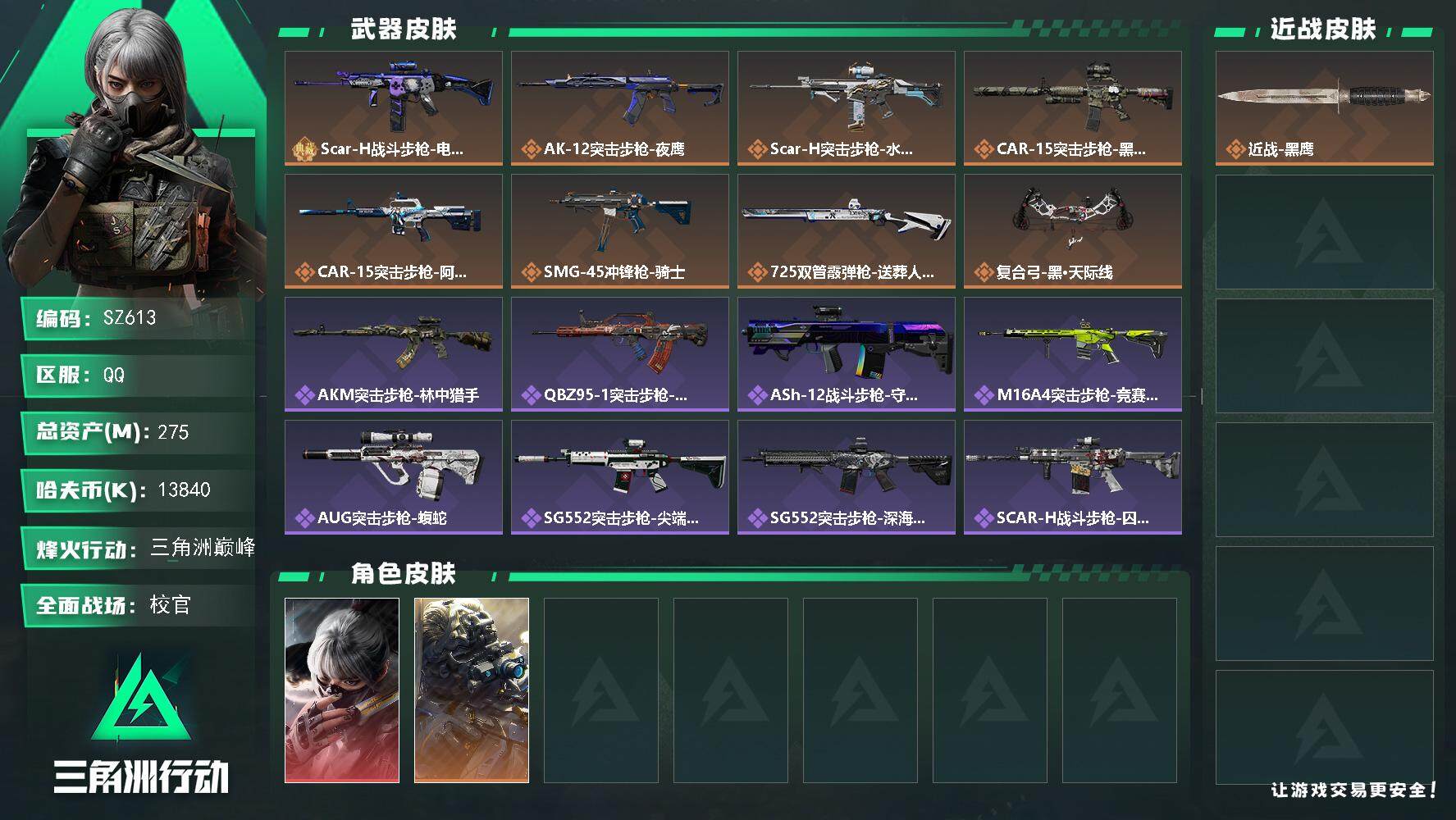 D10868/QQ区/可二次/钱包注销/【总资产:348.1M+哈夫币:13845W+近战武器-北极