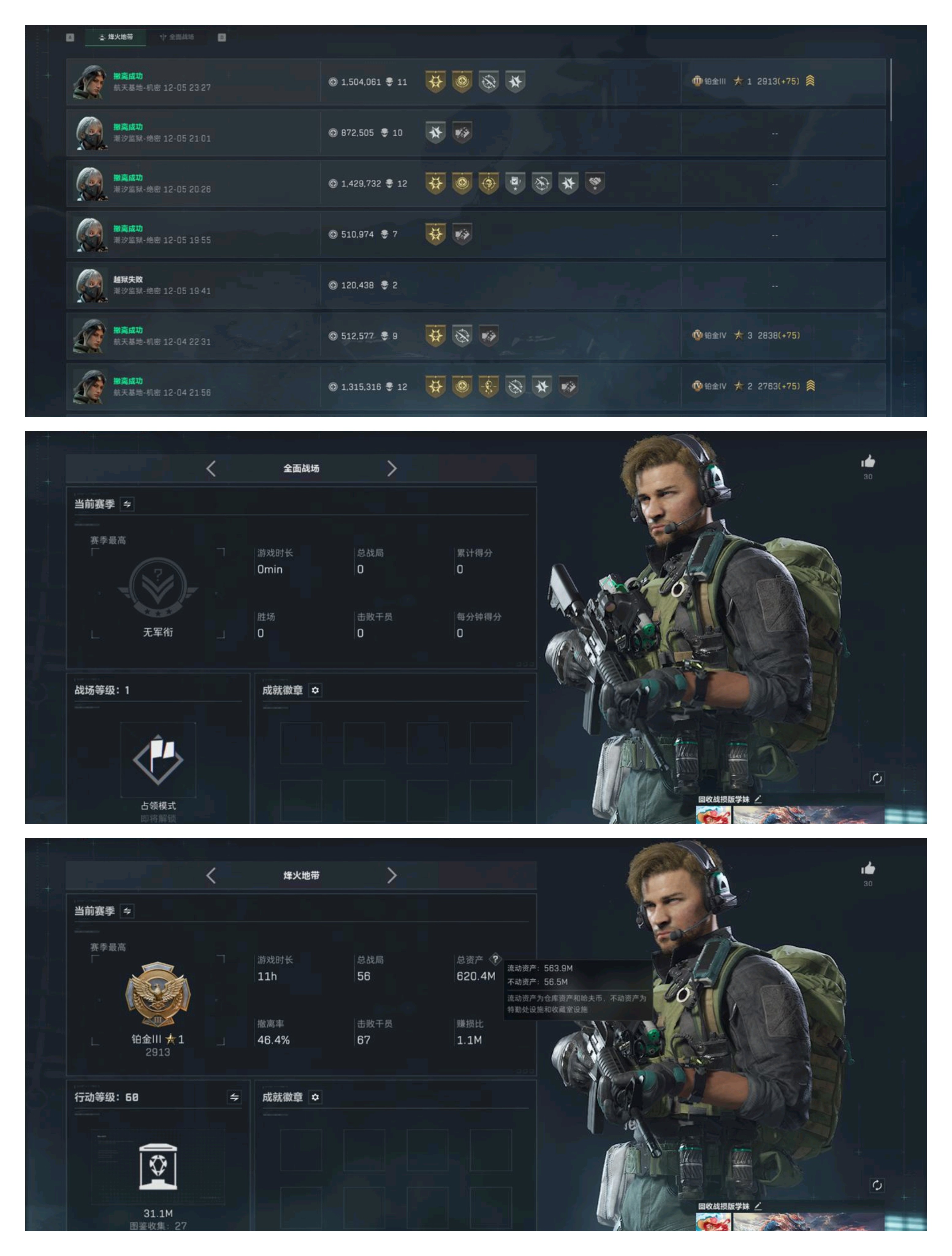H9309/【猛攻资产号】/区服QQ/哈夫币1.4亿/总资产286M/行动等级60/战场等级1/【特