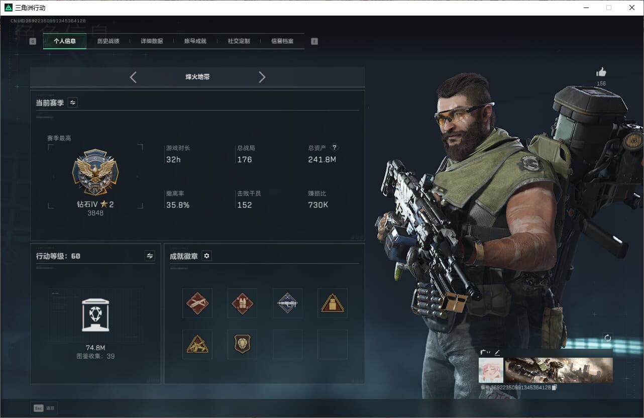 总资产40M-哈夫币2.485K-烽火地带等级60-烽火地带段位-三角洲巅峰