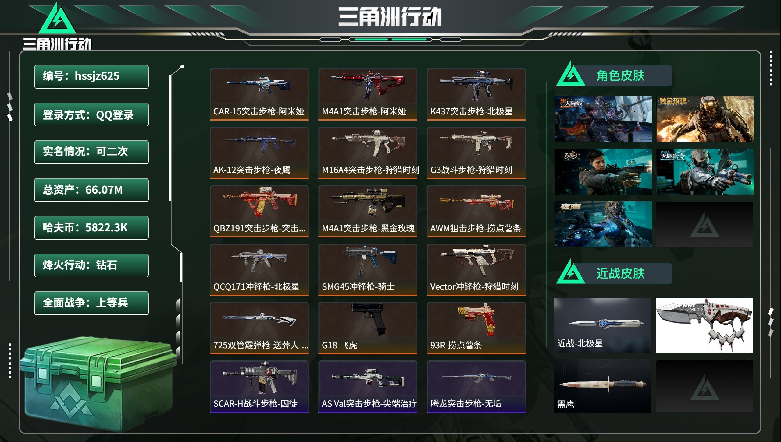hssjz625 总资产66.07M,哈夫币 5822.3K,战场等级:50 上等兵,行动等级:60